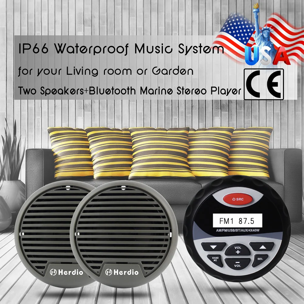 Водонепроницаемый морской стерео Bluetooth аудио FM AM радио приемник MP3-плеер + 3-дюймовые Морские Динамики для UTV ATV яхта Мотоцикл лодка