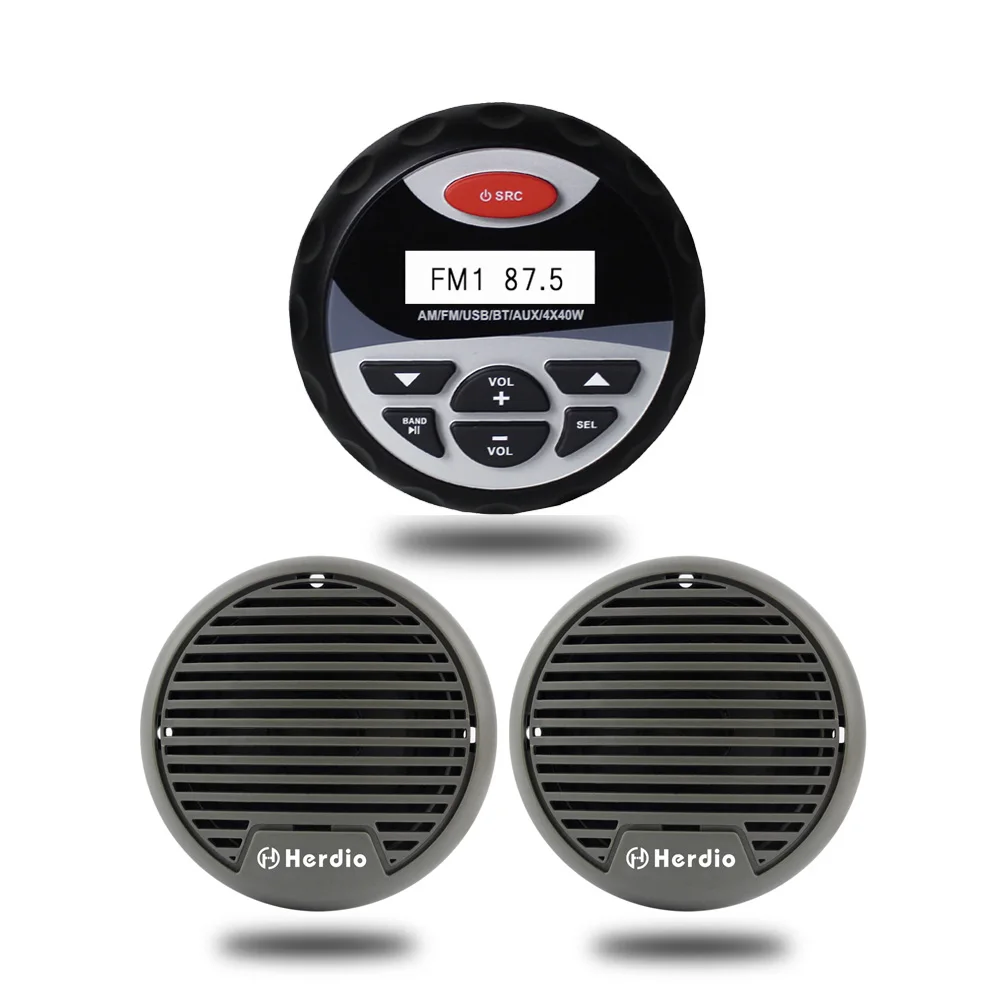 Водонепроницаемый морской стерео Bluetooth аудио FM AM радио приемник MP3-плеер + 3 "Морской динамик для UTV/ATV/яхты Мотоцикл лодка