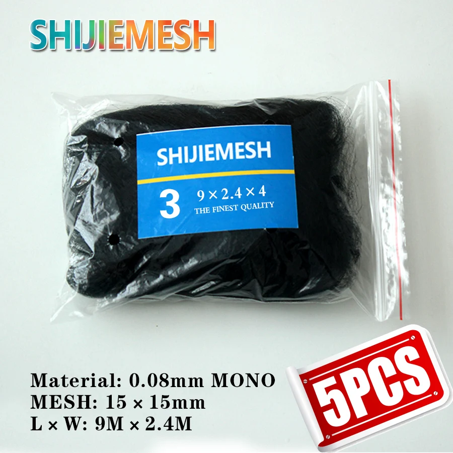 5 шт., нейлоновая сетка для сада, с глубокими карманами, 0,08 мм, 9 м x 2,4 м, 15 мм
