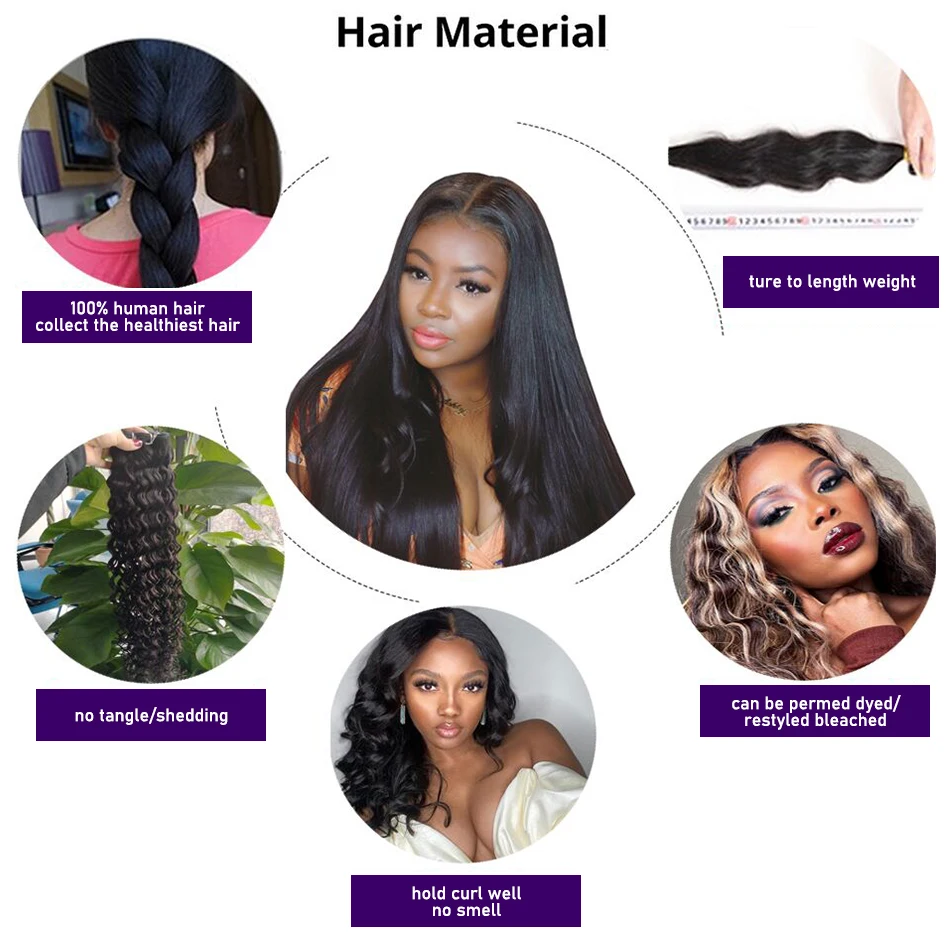 Волосы Shuangya Бразильские глубокие волнистые пучки с застежкой 4x...