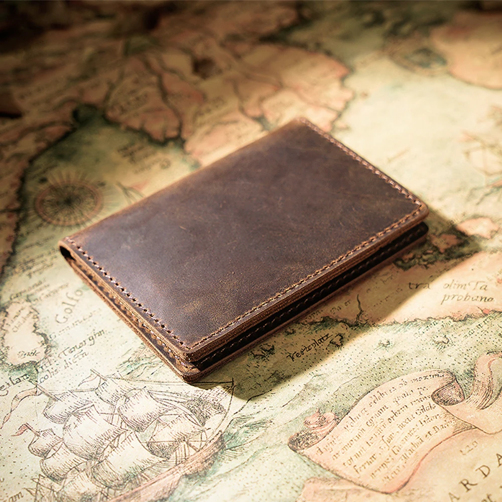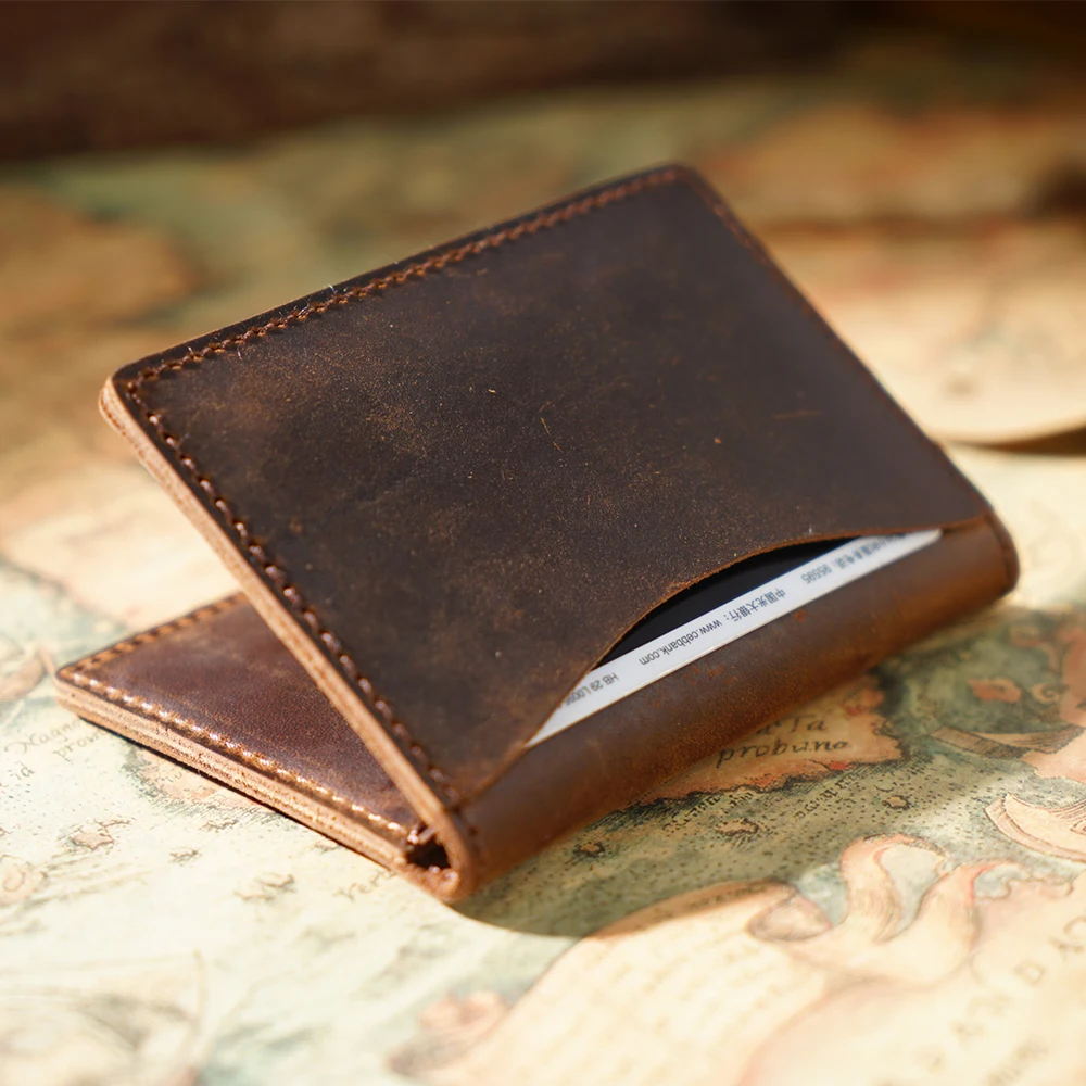 Новое поступление 2020, мужские держатели для кредитных карт, Винтажный дизайн, коричневый кошелек из кожи Crazy Horse, индивидуальный деловой кошелек унисекс, оптовая продажа