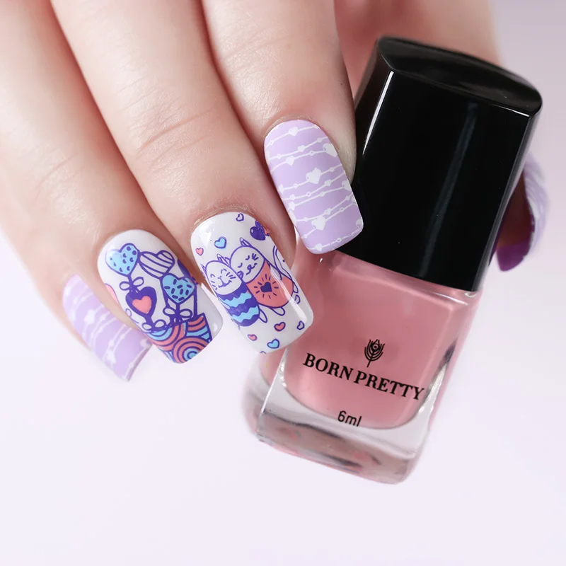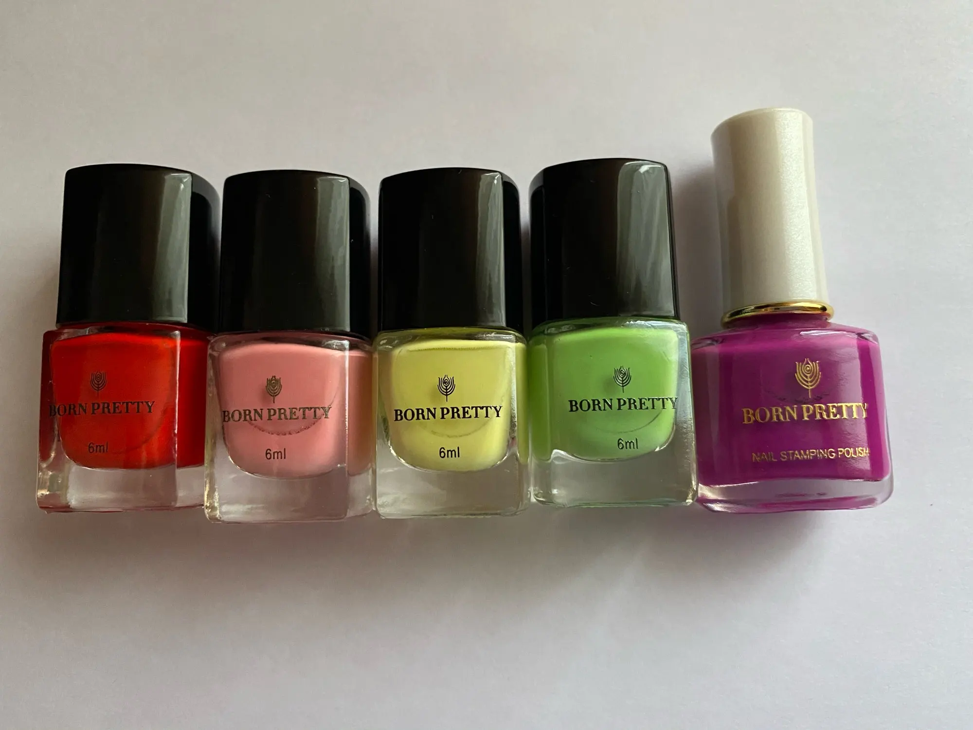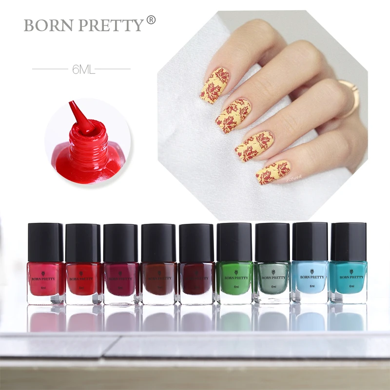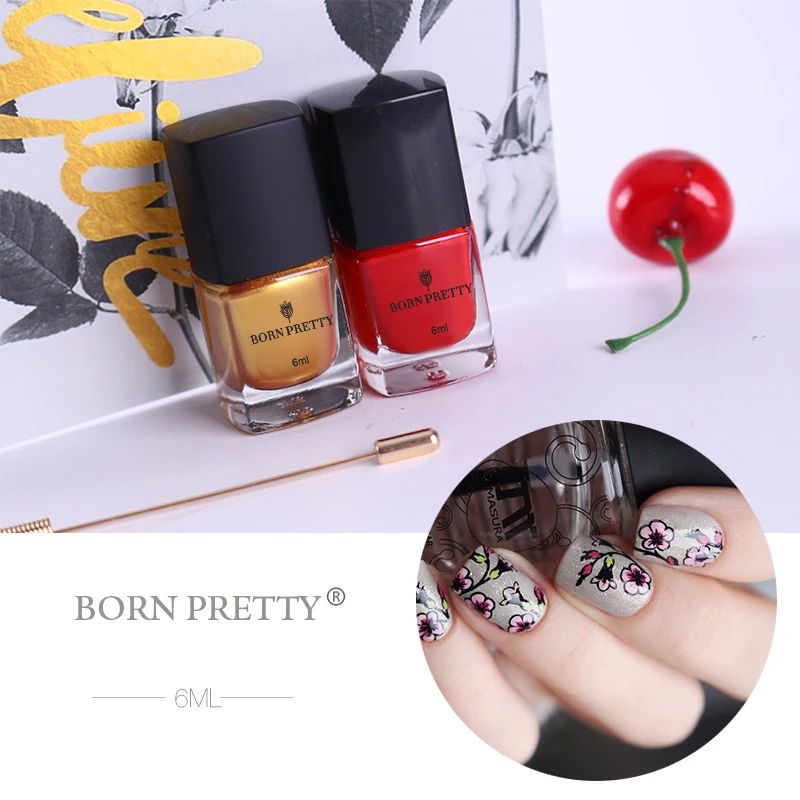 Типсы для маникюра BORN PRETTY, стемпинг ногтей покрытие, белые, красные, черные, серебристые, цветные, для полировки ногтей