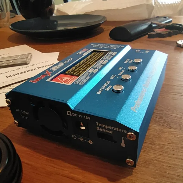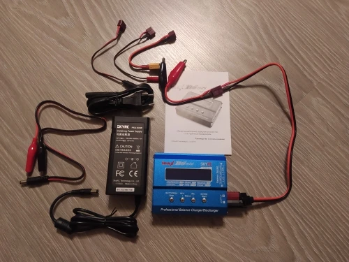 Товар хороший, все работает, правда потом кулер стал дребезжать, но это не страшно, в комплекте была также инструкция на ангийском и русском языке и плата зарядки JST XH. Адаптер в комплекте на 15в