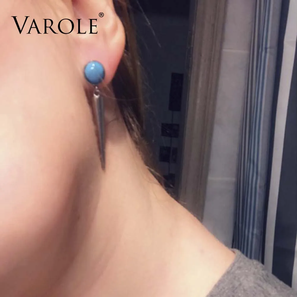VAROLE Спайк длинное из натурального камня Серьги гвоздики для ушей золото Цвет висячие серьги из нержавеющей стали, свисающие серьги для женщин, ювелирные изделия