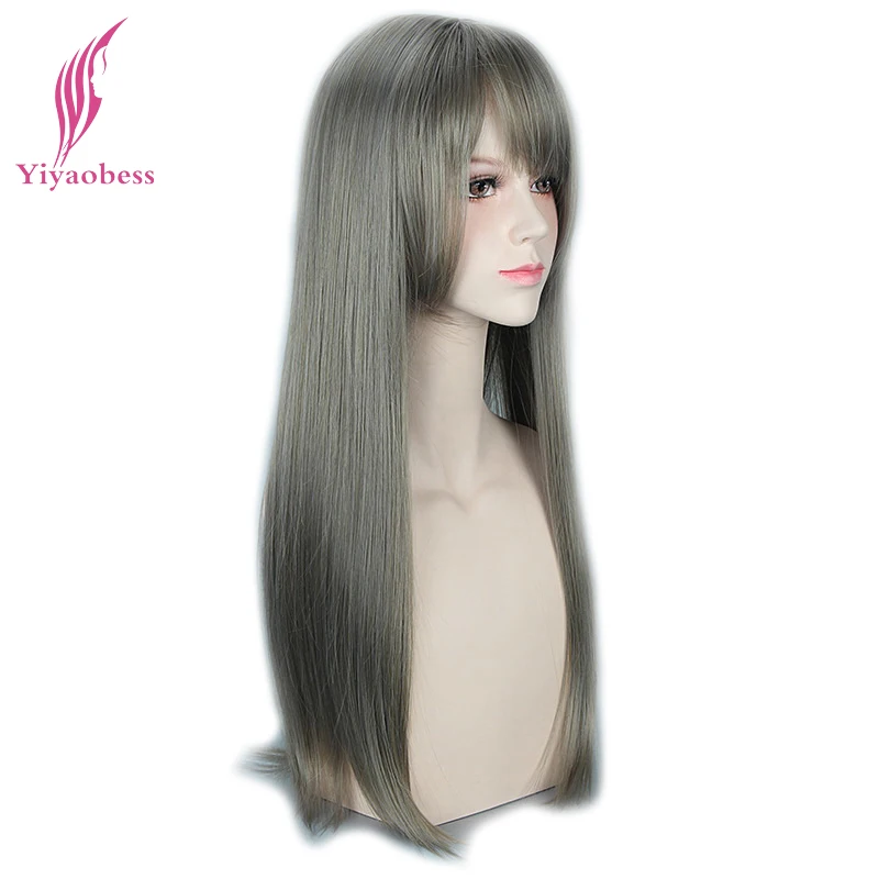 Yiyaobess 26 дюймов длинный прямой серый парик с челкой термостойкие синтетические натуральные волосы парики косплей для белых женщин