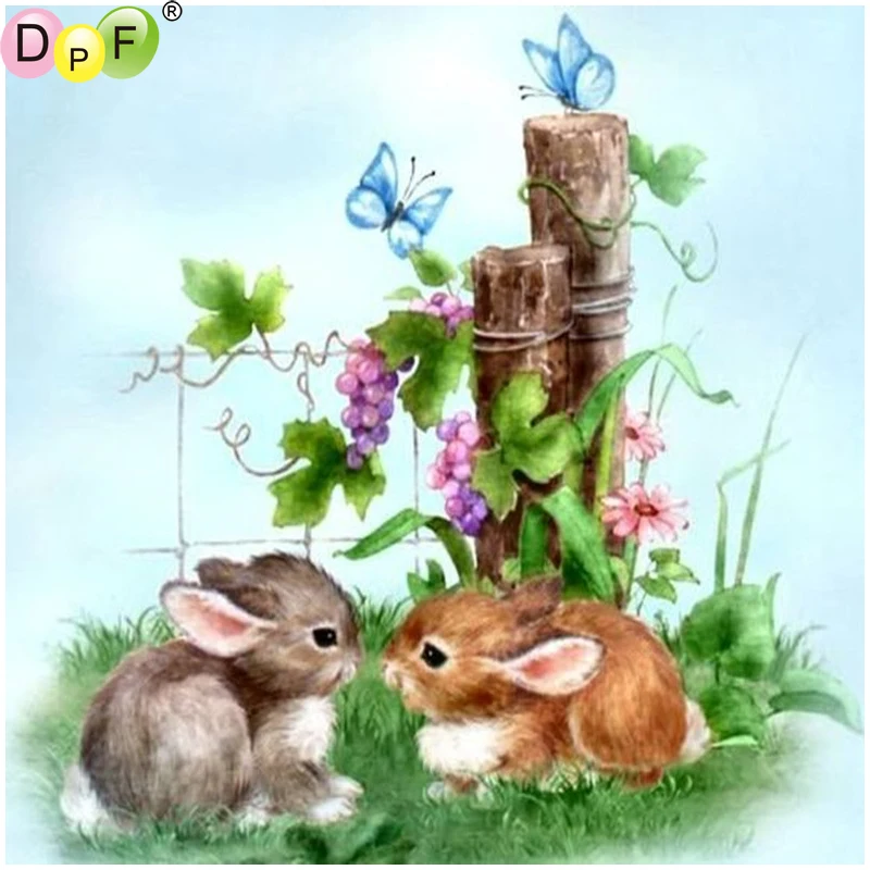 DPF два маленьких кролика 5D рукоделие Алмазная вышивка Настенная живопись для дома декоративная Бриллиантовая мозаика квадратная алмазная живопись вышивка крестиком