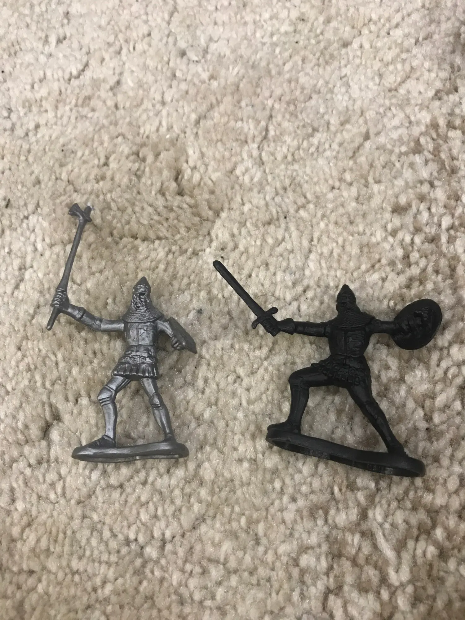 Очень милые маленькие средневековые солдатики. Хотя надеясь, что размер будет таким же, как у D & D mini s. Они выглядят как тролли по сравнению с моим Голиафом или бойцом. Все еще будет полезно играть на занятиях с детьми.