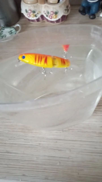 Товар пришел в Ростовскую область за 1.5 месяца 1)Тройники отличные 2)Сборка отличная 3)К покраске претензий нет,вот только есть маленькая белая недокраска,а так воблер очень хороший буду пробовать,для воблер а за 95 руб.отличные показатели