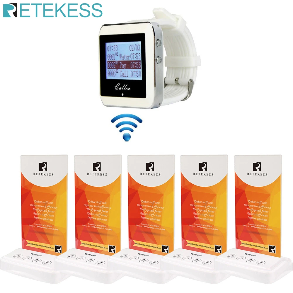 Retekess ресторанный пейджер, беспроводная система вызова официанта, 1 приемник часов + 5 шт., TD001, настольный пейджер, служба поддержки клиентов