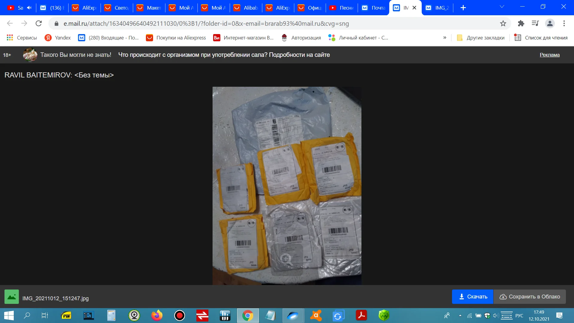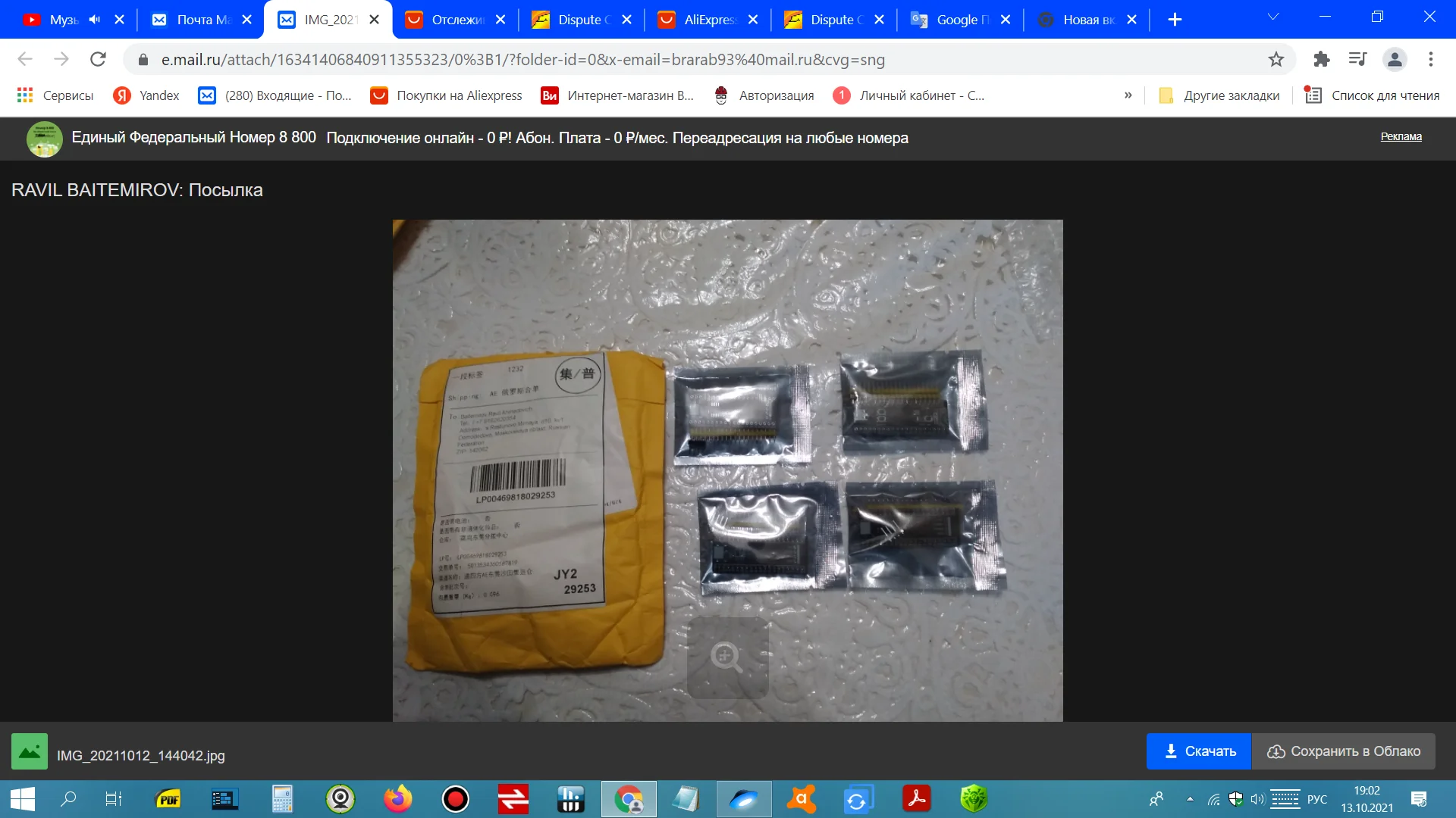 Страна: RU Доставка: Cainiao Super Economy 19.10.2021
