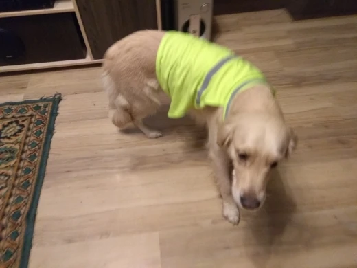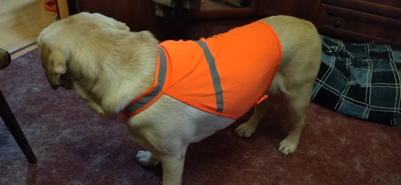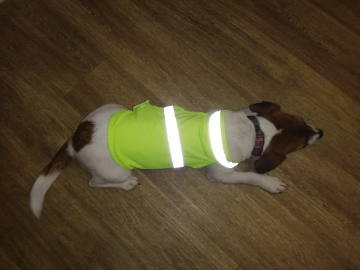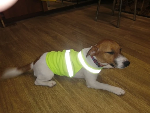 Отличная накидка для выхода в лес или на прогулку в темное время суток. Светоотражающие полоски присутствуют, липучки на первый взгляд крепкие. Размер L на щенка лабрадора 31кг вполне подошёл. Пользуйтесь таблицей выбора размера на картинках в описании товара. Пришло за пару недель в постамат. Думаю возьму ещё несколько. С продавцом не общался, но спасибо ему за быструю отправку и хороший товар.