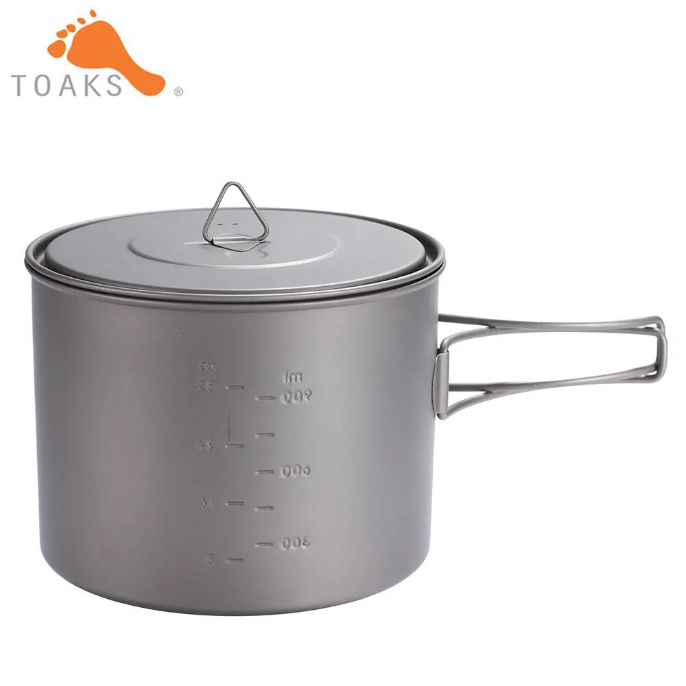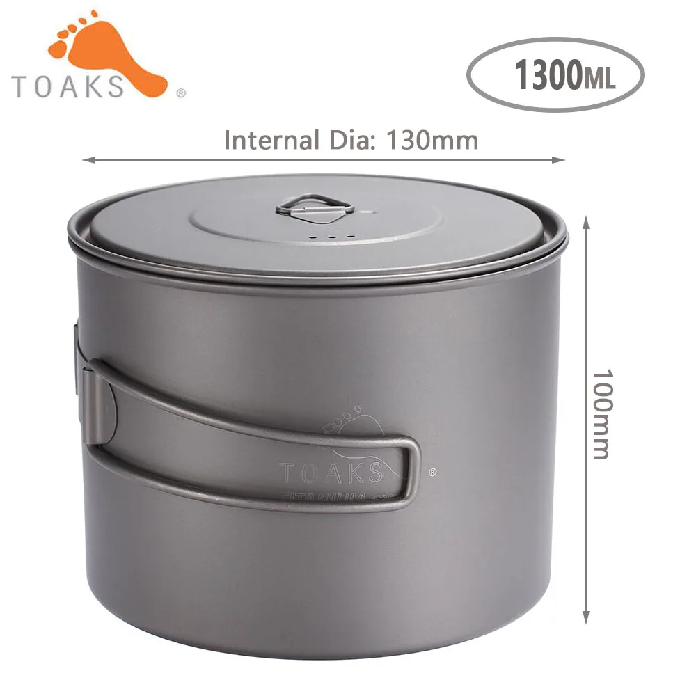 Сверхлегкий титановый горшок TOAKS для путешествий, термостойкий горшок со складной ручкой, 1300 мл