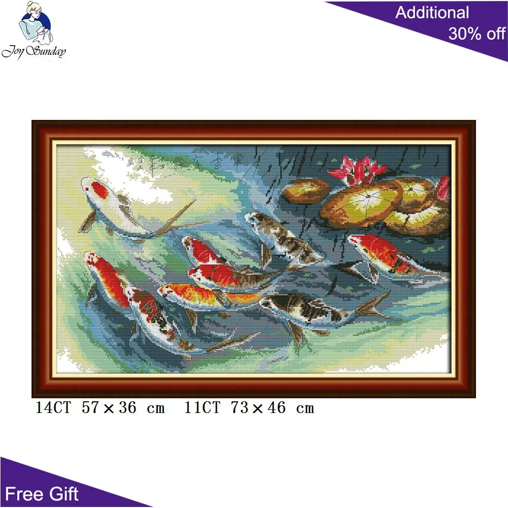 Набор для вышивки крестиком Joy Sunday Fish D958(10) 14CT 11CT, излишки для домашнего декора с печатью и счетом, год за годом, китайские наборы для вышивки крестиком