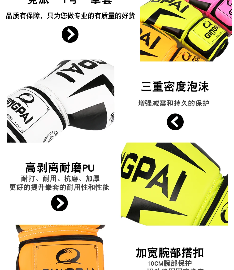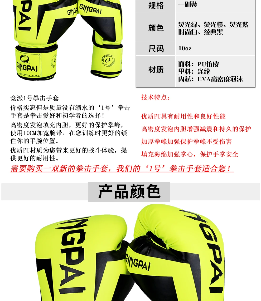Боксерские перчатки GINGPAI для мужчин и женщин, 6, 8, 10, 12 унций...