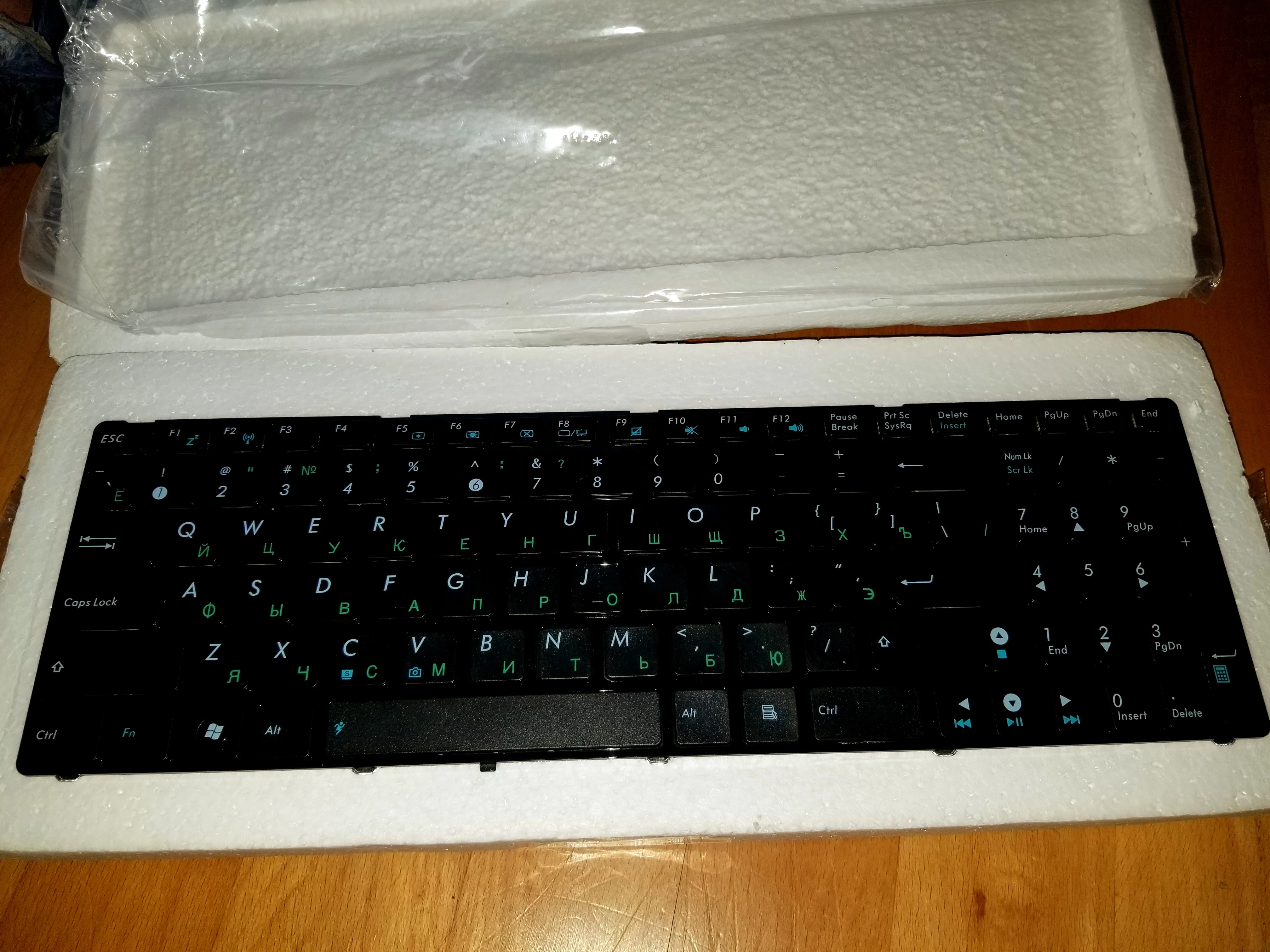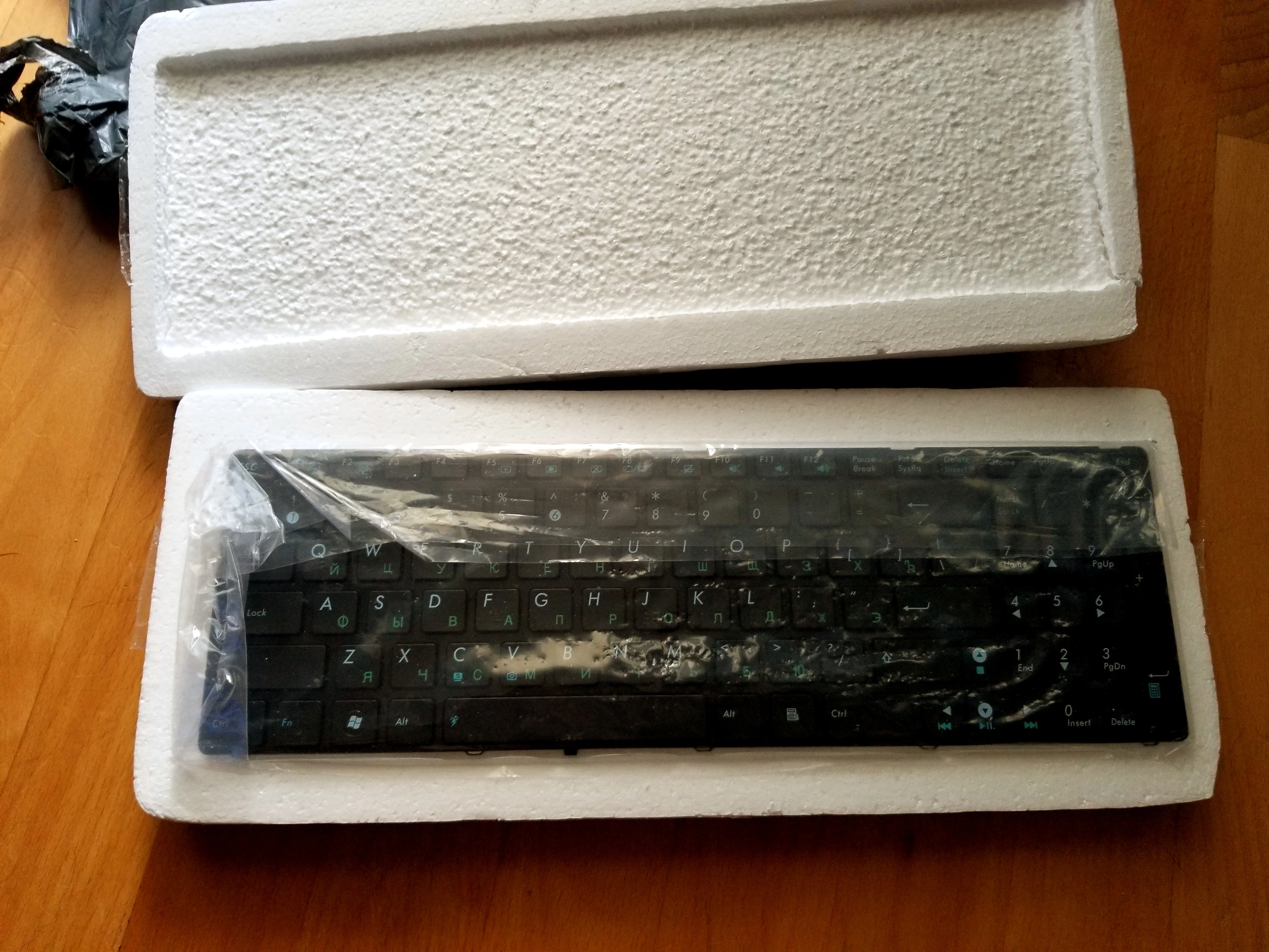 доставка до минска около трех недель. пришла упакованной в пенопласт. немного больше по размеру, чем родная клавиатура, и встает с трудом, но работает (если не брать некоторые fn+ клавиши, громкость не работает, например).