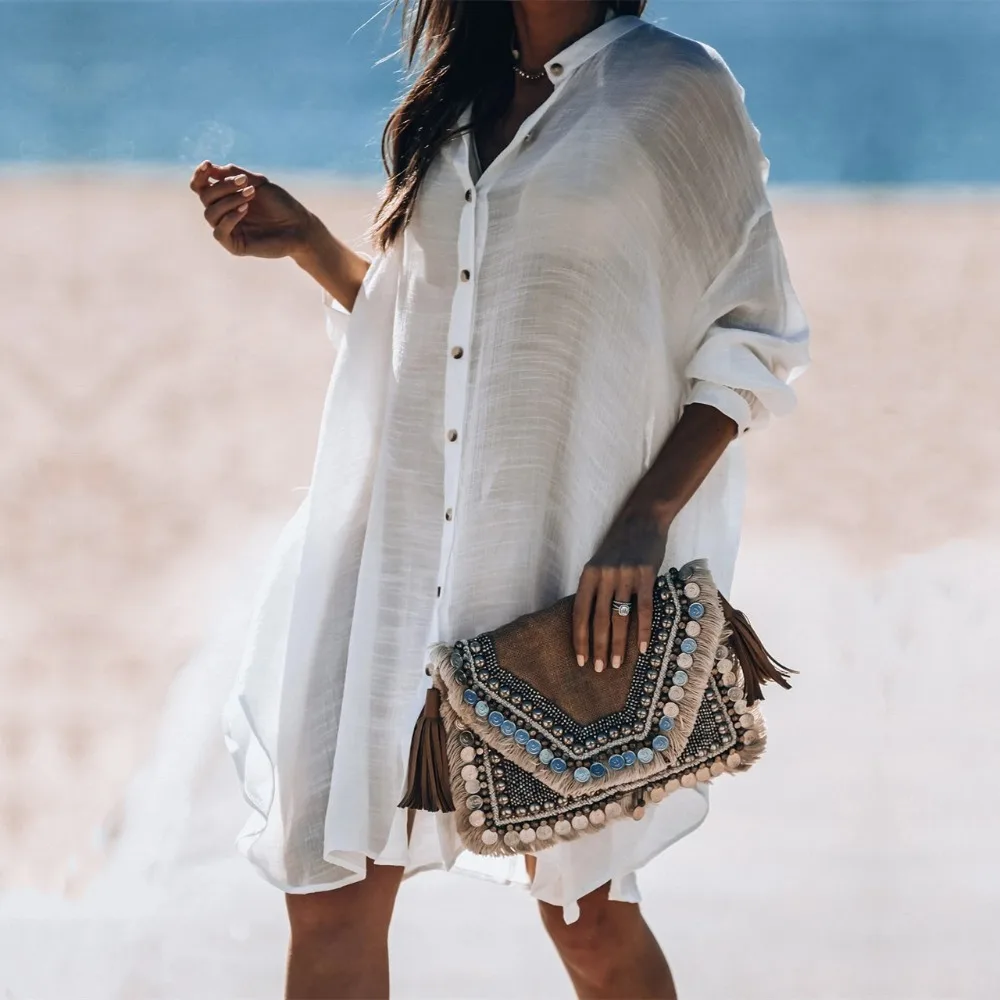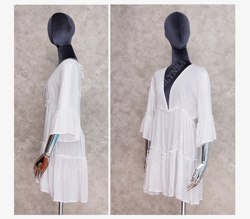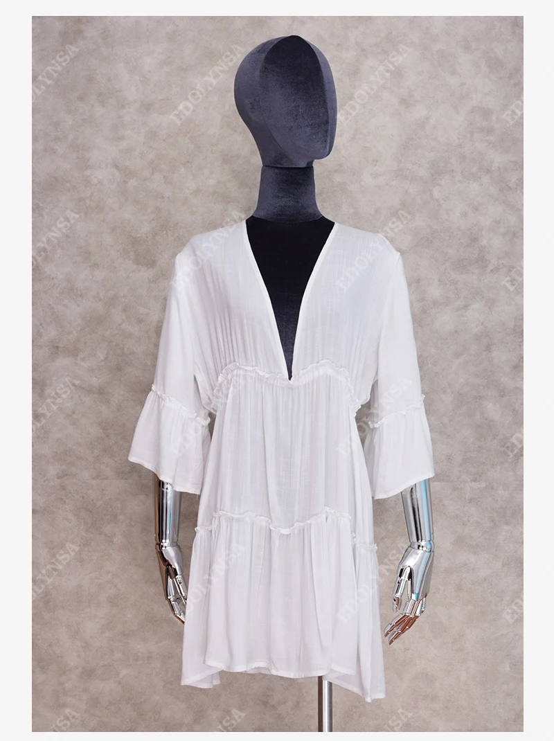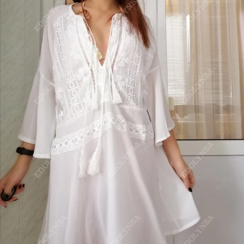Женский купальник, накидки, кафтан с рукавами-мандаринами, Пляжная туника, платье, Пляжное Платье, однотонное белое парео, пляжные накидки # Q429
