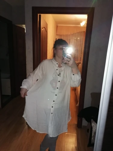 Кайфовая рубашка! Тонюсенькая, очень приятная к телу, сшита хорошо, на мой рост 178 сзади закрыла попу. Для пляжного отдыха самое оно!