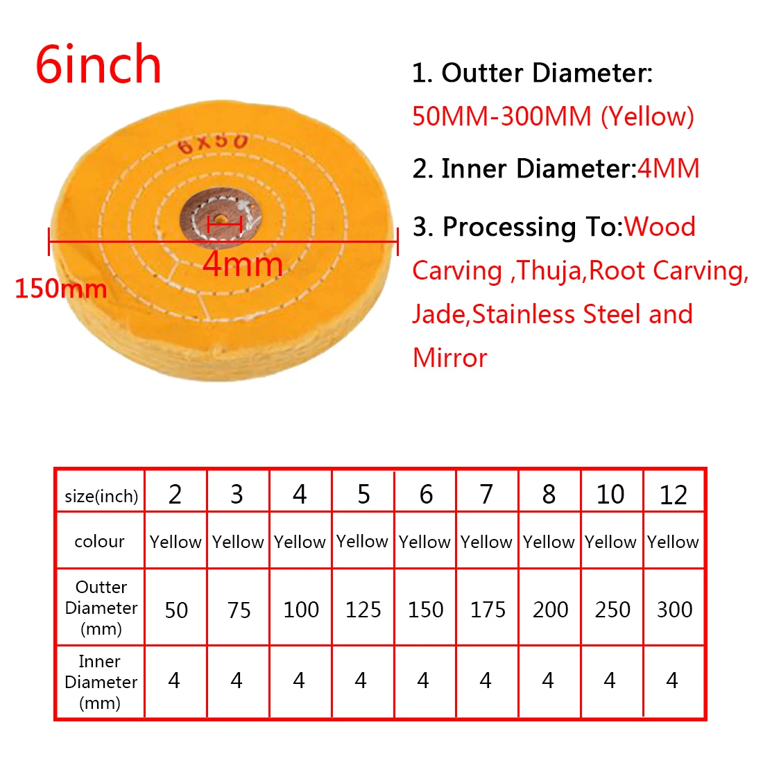 Дополнительно 2 "-12" желтый хлопковый ворсовой ткани полировальный круг золото серебро ювелирные изделия зеркальная полировка круг шлифовальные инструменты 4 мм Внутреннее отверстие