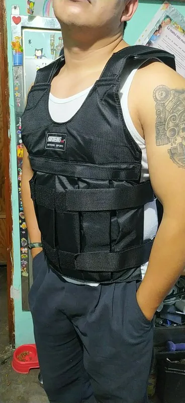 Быстрая Доставка в течение 11 дней, в идеальном состоянии! Жилет высокого качества с жесткой строчкой. Получил также 12 небольших мешков для заполнения весом (с песком не будет достигать 50 кг-это только несущая способность). Единственная вещь, которую я вижу, заключается в том, что плечевые ремни не регулируются, но даже несмотря на то, что жилет плотно сидит и довольно удобно. (еще не пробовал добавить вес). Абсолютно рекомендуется
