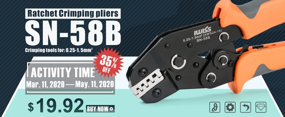 Хорошо сделанный обжимной инструмент, но диапазон использования для небольших обжимных клемм ограничен мелкими обжимными штампами. Е. Г. Это не подходит для типичных 2,54 мм (0,1 ") интервалов клемм, таких как CST100-ii или как два зоны обжима слишком далеко друг от друга для этого инструмента.