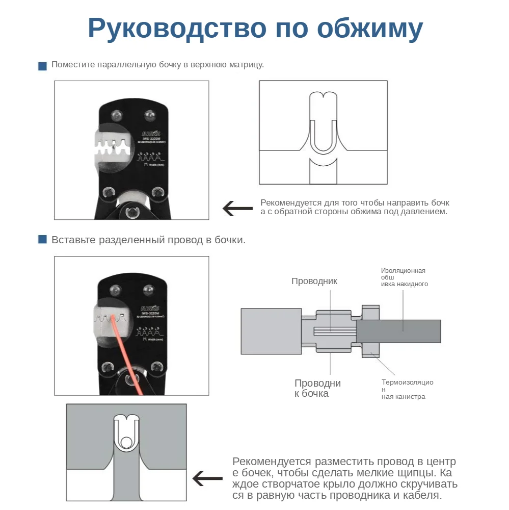 Очень хороший. Жмёт качественно. Пока навык не велик. Учусь. Не очень понятны цифры на кримпере. То ли диаметр провода. То ли размер контакта