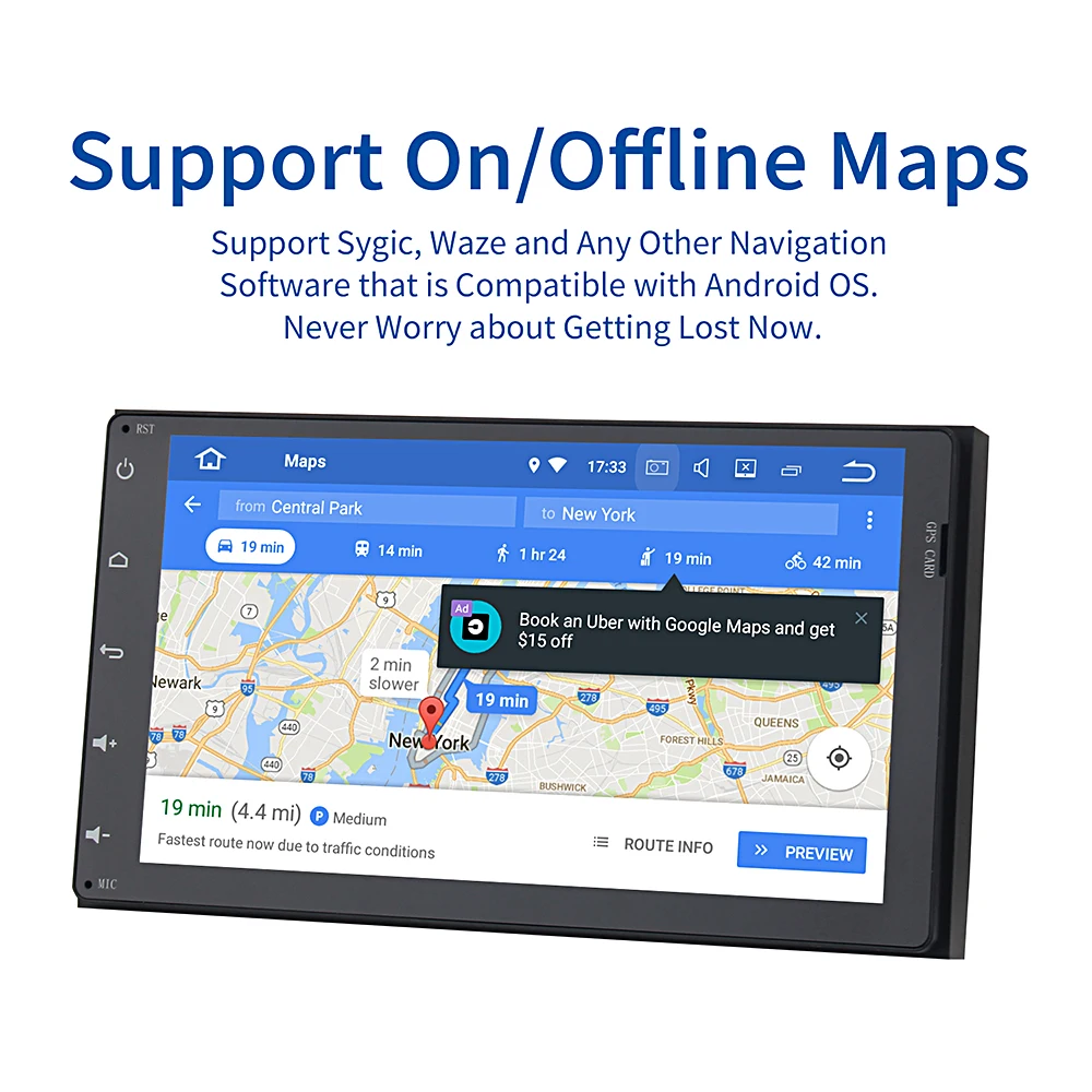Встроенный GPS/Wifi/радиоДва входа камеры, передняя/задняяFull HD видео выход для подголовникаДвойной аудио выход Sub 4 (2 в)3 выхода USB, 1,5a каждый