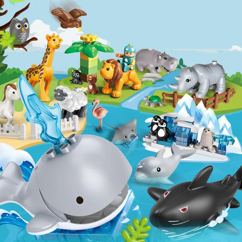 Большие строительные блоки с животными, игрушки, утка, курица, олень, острик, лиса, белка, фламинго, кангроо, коала, луч, Сова, совместимые детали