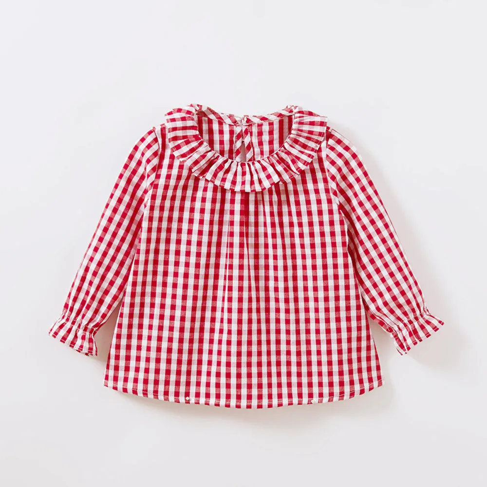 Весенние блузки для маленьких девочек детская хлопковая рубашка с воротником Питер Пэн рубашка в клетку с длинными рукавами для девочек топы для девочек 3 вида конструкций