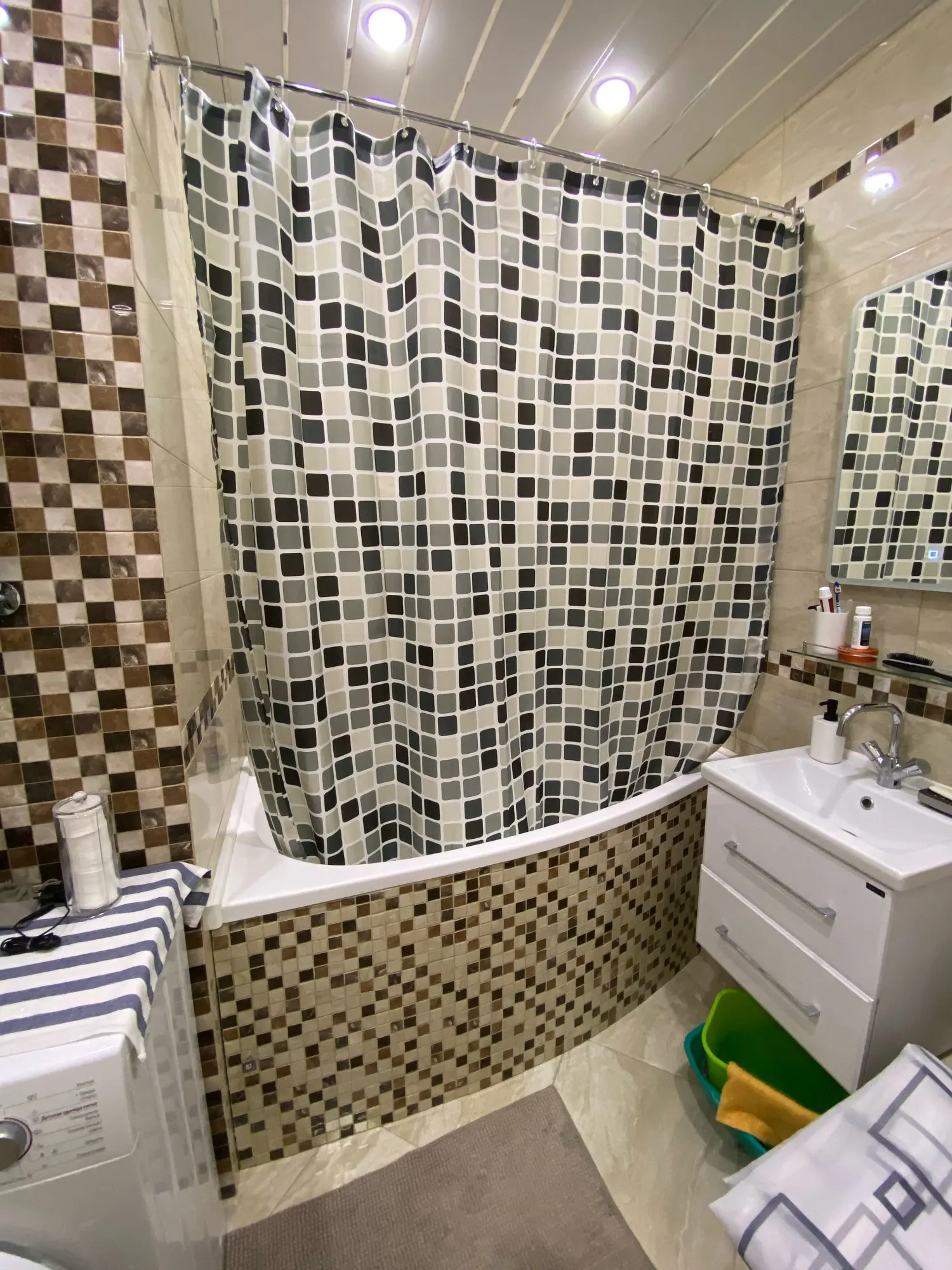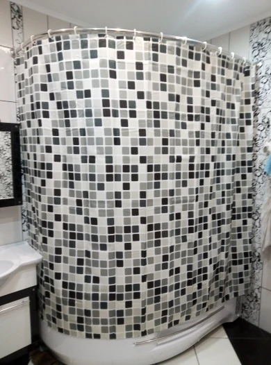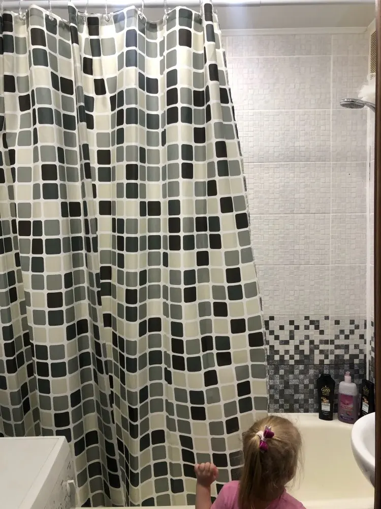 Отличные шторы, качественная водонепроницаемая ткань, рисунок очень подошел к нашим стенам из мозаики. Быстрая доставка.