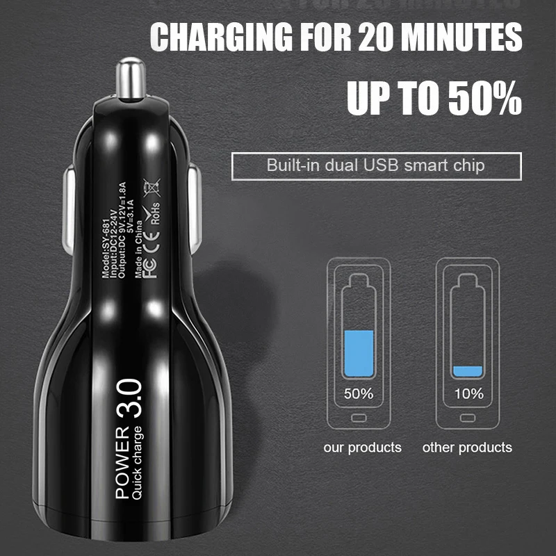 Приседать Quick Charge 3,0 Зарядное устройство QC 3,0 5V 9V 12V Dual USB Автомобильное зарядное устройство автомобильное зарядное устройство быстрой Зарядное устройство мобильный телефон адаптер для путешествий автомобиль-зарядка