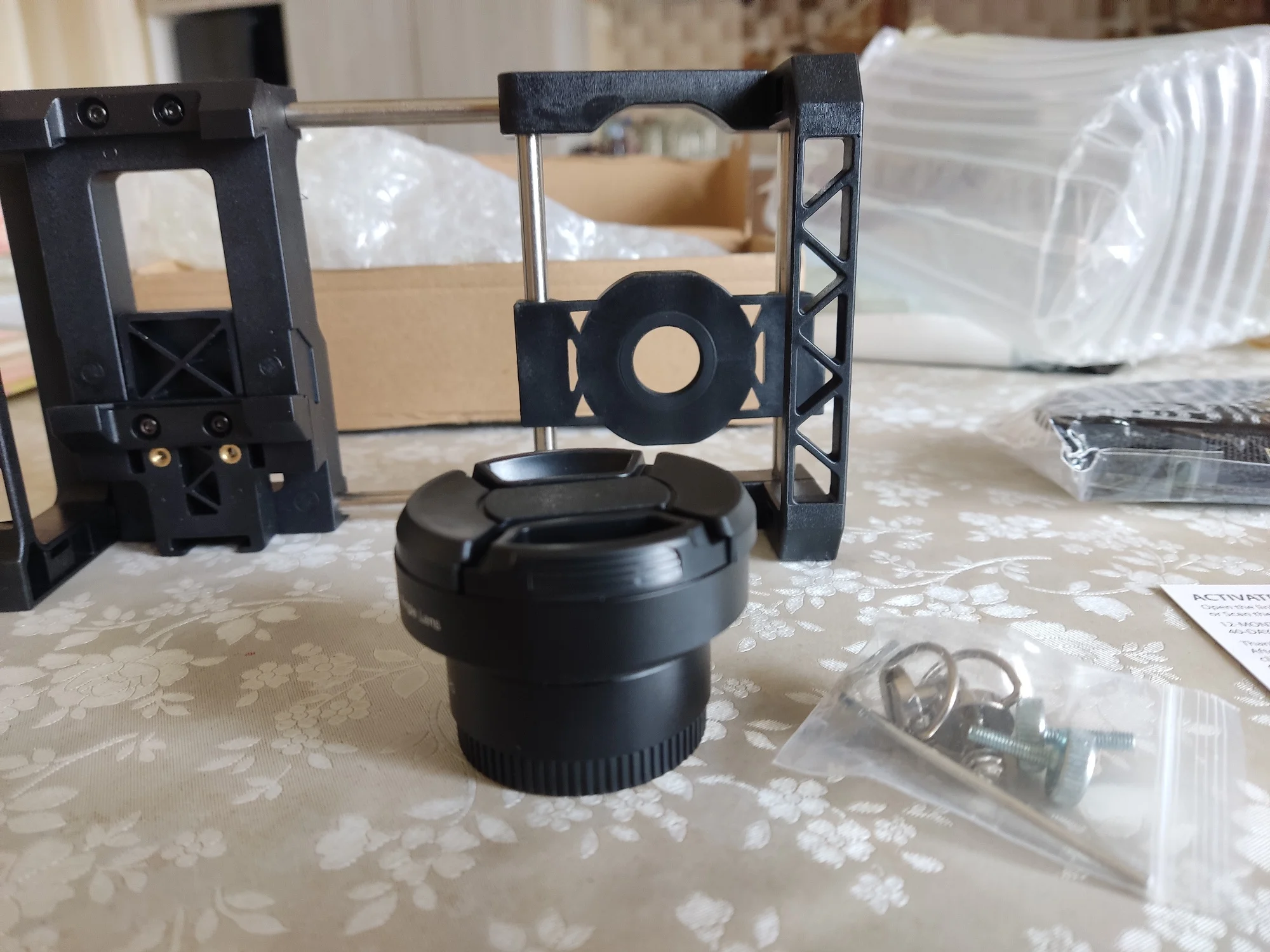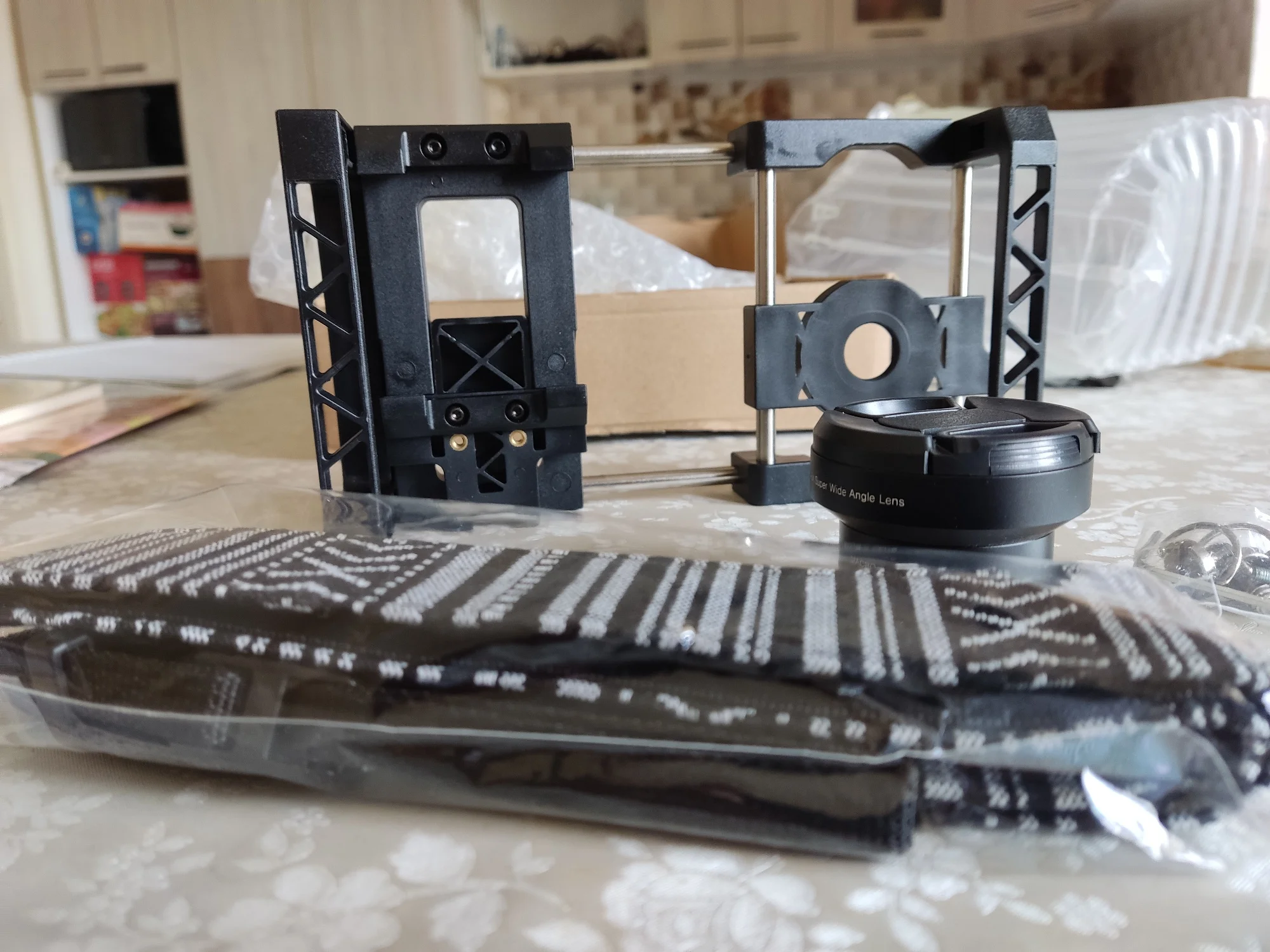 A:Клетка для мобильного телефона + широкоугольный объектив 0,45x + макрообъектив + ремень