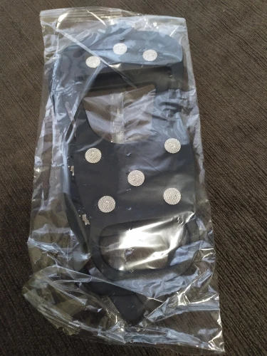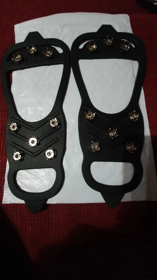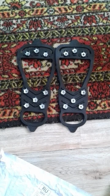 Доставка Укрпочта, упакованы в пакет с пупыркой. Металлические звёздочки очень острые. На мою длину ступни 26.2см (р-р 40-41) немного длинноваты, но это уже я перестраховалась, главное, что не малы. С обуви не слетают и хорошо. Немного тянутся, до рус. 43 должны быть, не более. Протестить пока не могу - снега нет.