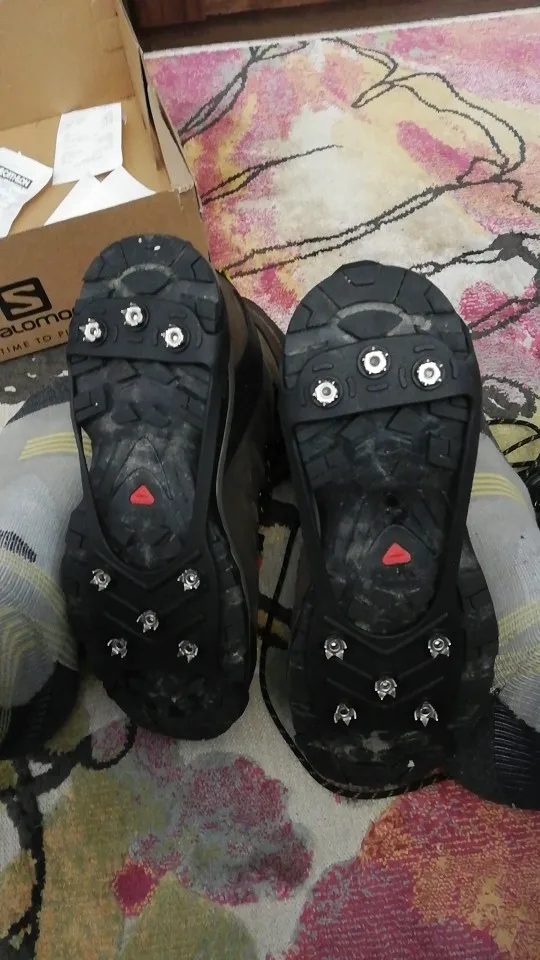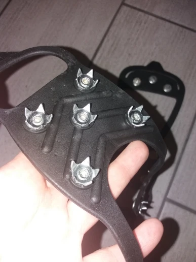 Заказывала уже у этого продавца эту позицию. Прошла один день по «зеркальному» асфальту, в Итоге где-то остались по одному шипу с каждого такого следка. Сцепка жёсткая, мне понравилось. За исключением лёгкого выпадения шипа из следка.