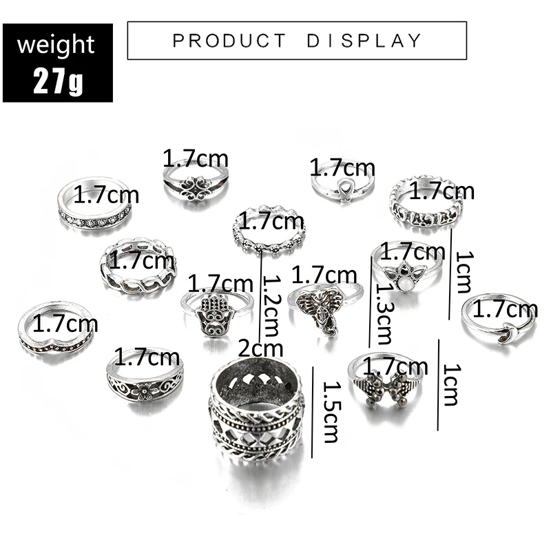 Кольцо Tocona, 13 шт.компл., богемное, в виде слона, короны, цветка, набор колец с кристаллами, золотого, серебряного цвета, для женщин, ювелирные изделия вечерние, 4096