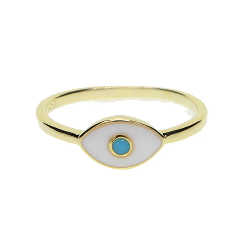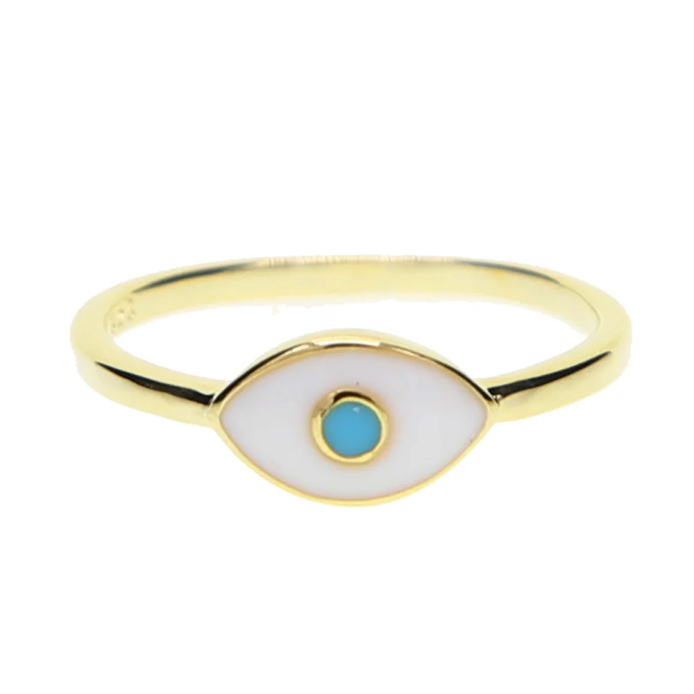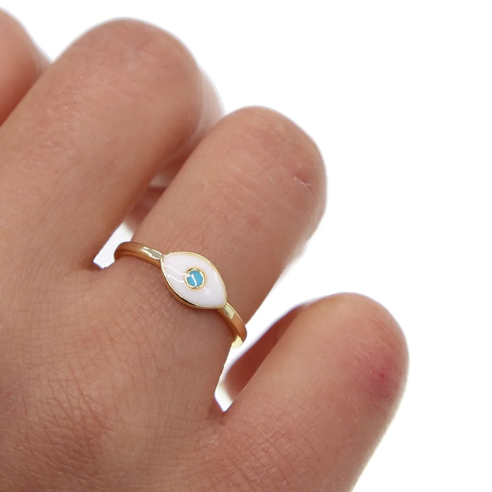 ringNew Trendy Lucky White Enamel Eye Jewelry Geometric Gold Color Turkish Evil Eye Single Blue Stone Rings Wedding Jewelry Gift