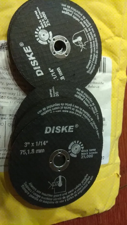 10 дисков весят 176 грамм. На них написано 1/14 дюйма, а не 1/16 как на рисунках магазина. Я их брал как зачистные, а не как отрезные поэтому доволен. В деле не использовал.