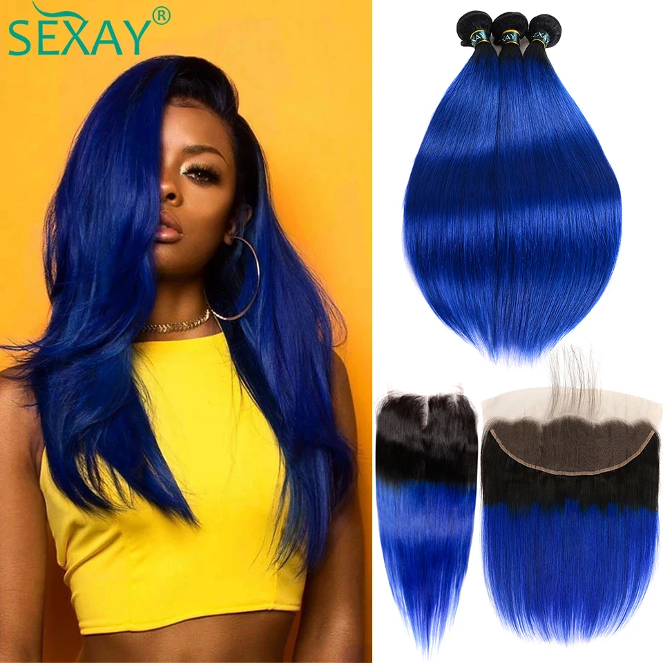 Sexay прямые пряди из бразильских волос, прямые пряди с темными корнями, предварительно окрашенные человеческие волосы