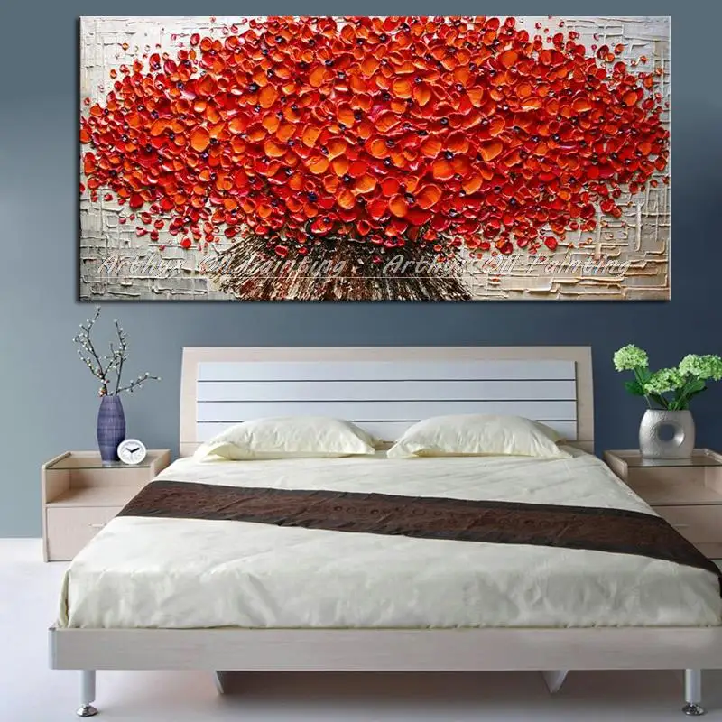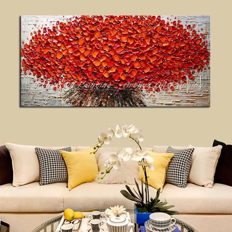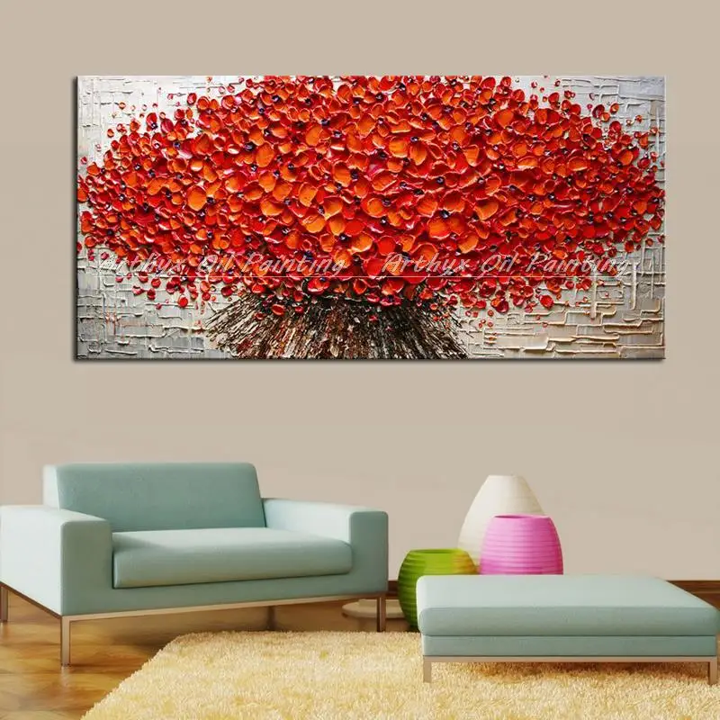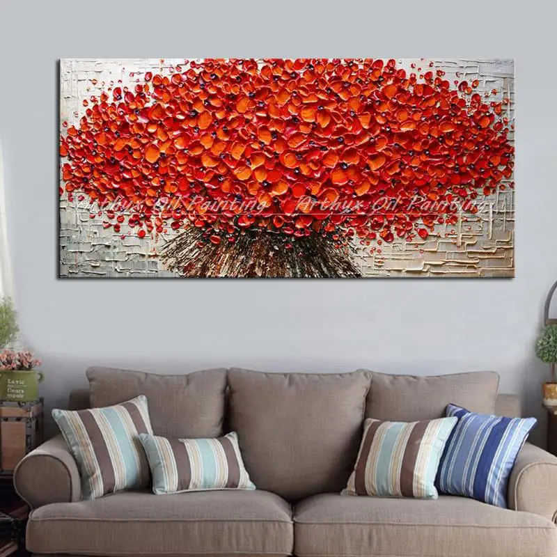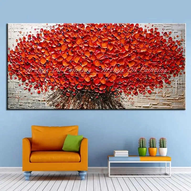 Arthyx ручная роспись нож 3D красные цветы картины маслом на холсте Современная Абстрактная Настенная картина для гостиной украшение дома