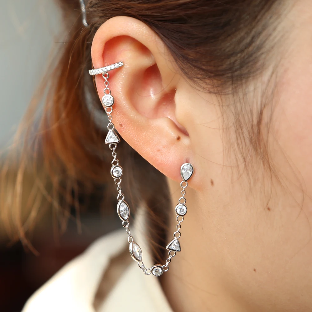 Женская Длинная цепочка из серебра 100% пробы, с фианитами