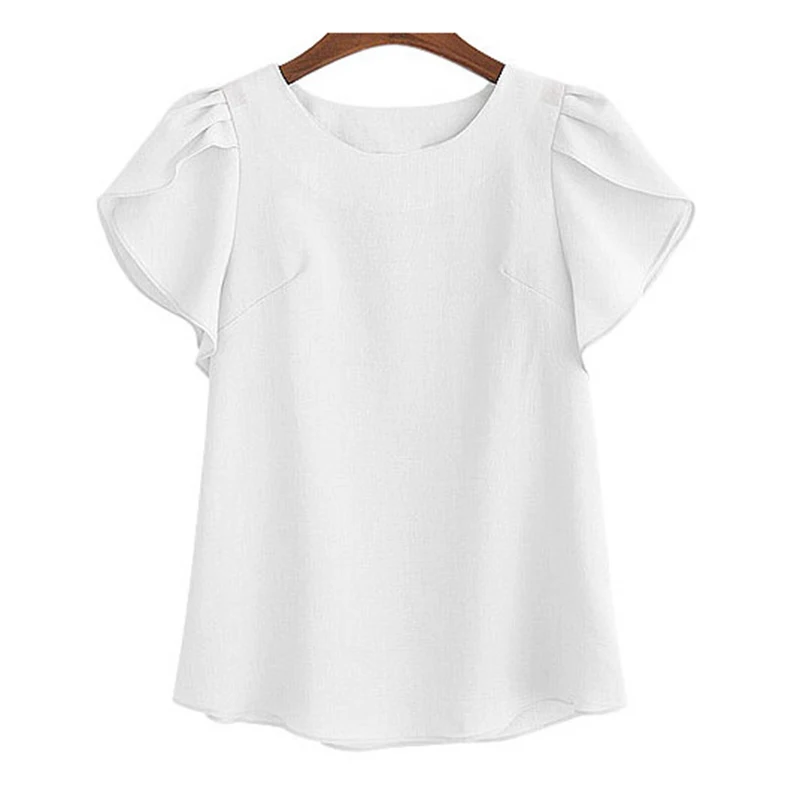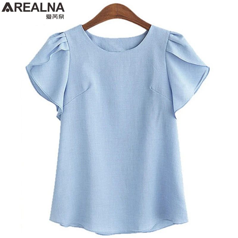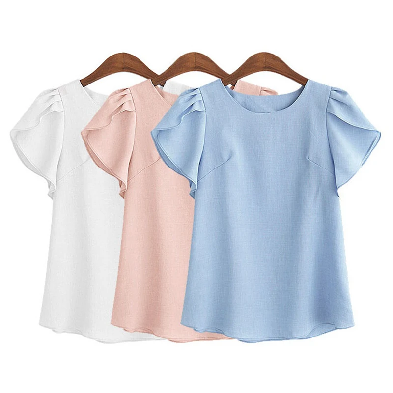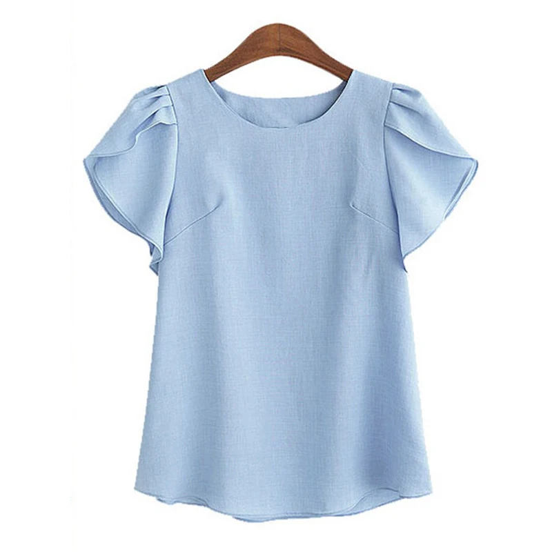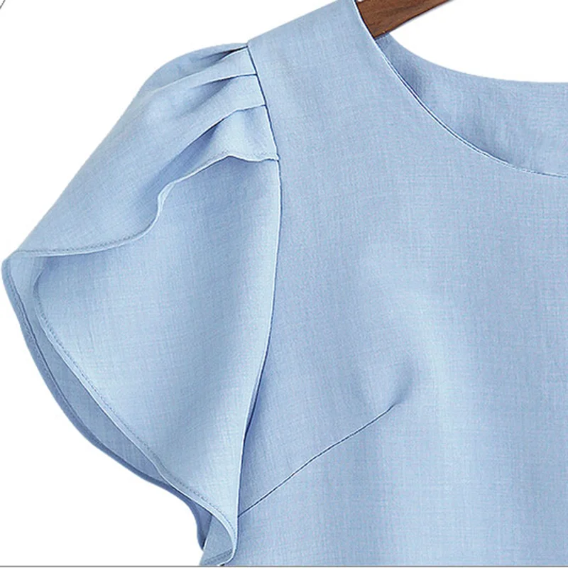 Женская шифоновая блузка с оборками, повседневная винтажная блузка большого размера с круглым вырезом, лето 2022