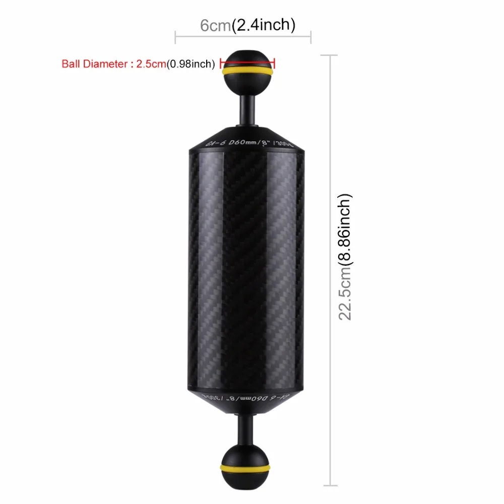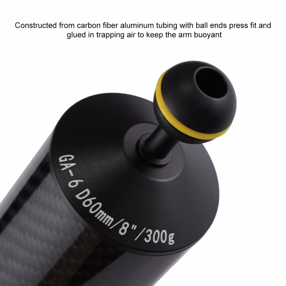 Плавучая рукоятка PULUZ из углеродного волокна, двойной шарик, плавучая рукоятка, подводная камера для дайвинга, лоток 80 мм 60 мм