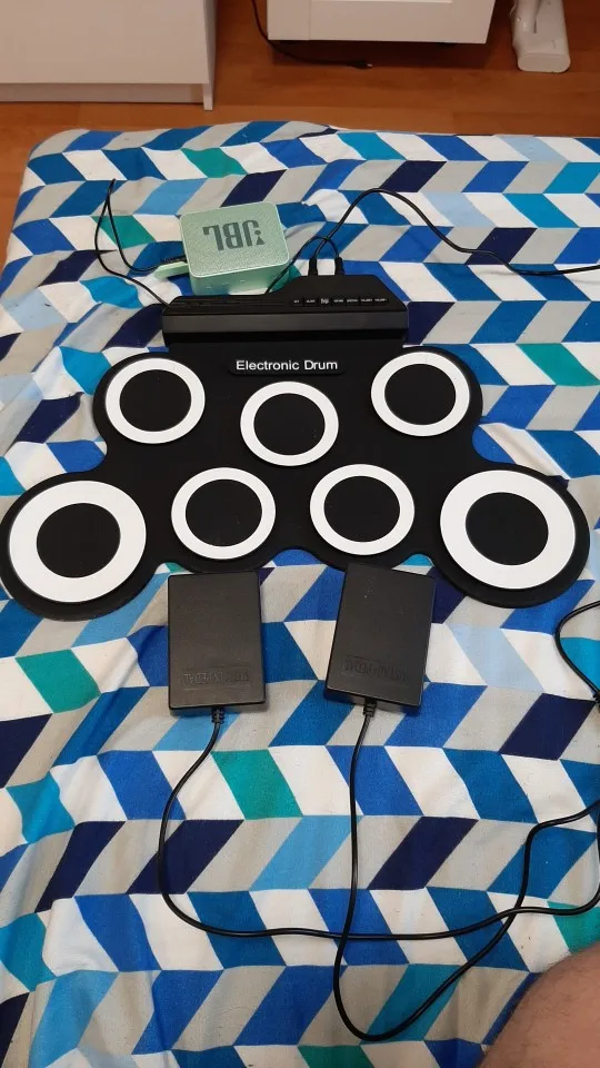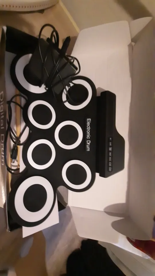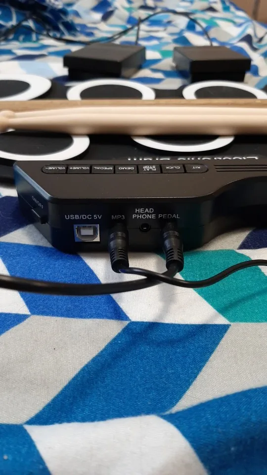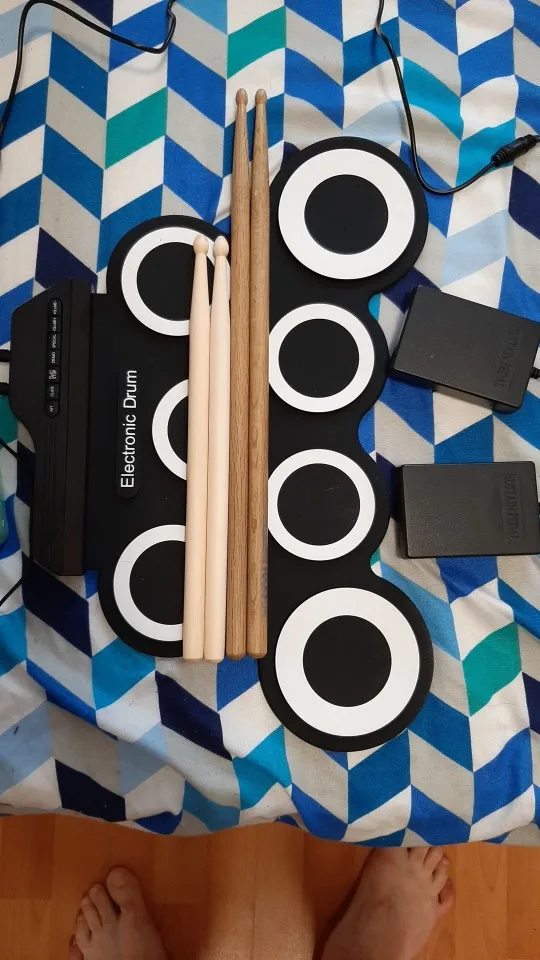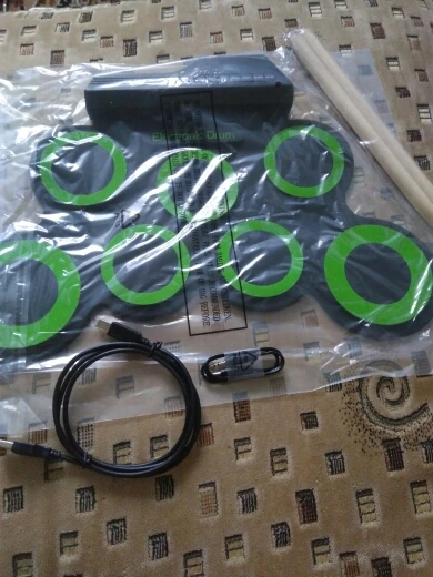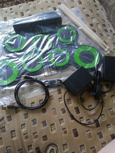 игрушка-огонь! всё играет, есть разные звуки барабанов, все удары считывает, за исключением тех, где я сам промахнулся. я думал что они будут чуть больше. комплектные палочки не очень. достаточно короткие, лучше иметь свои. играет только через колонку и никак иначе, в комплекте есть всевозможные провода, так что вам понадобится только колонка, палочки и батарейки (ААА). длины провода педали мне хватает.