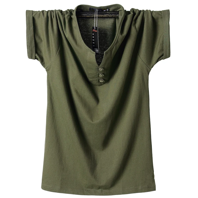 Футболка мужская приталенная на пуговицах, хлопковая футболки с коротким рукавом с V-образным вырезом, повседневная однотонная, 6xl 7xl 8xl, лето, 2021