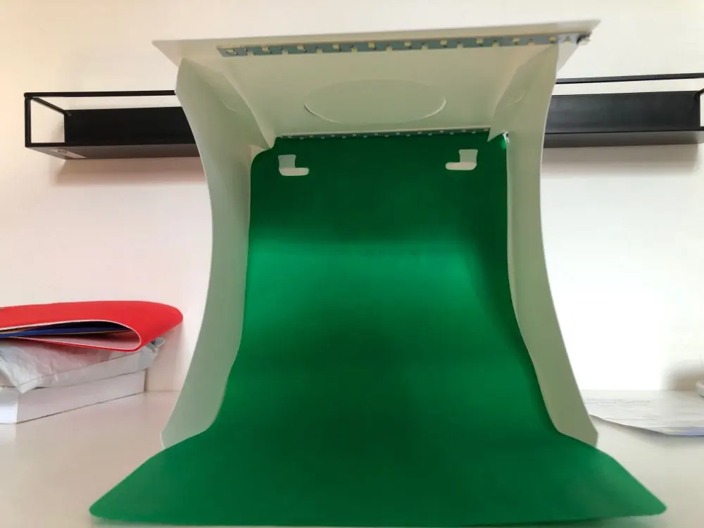 Небольшой Формат, но функциональный для небольших объектов. Нижняя часть не имеет сплошного цвета, вы должны прикоснуться к фотографиям, прежде чем снимать зеленый, синий фон... И т. Д. В противном случае, упаковка хорошо аккуратная и быстрая доставка! Спасибо!