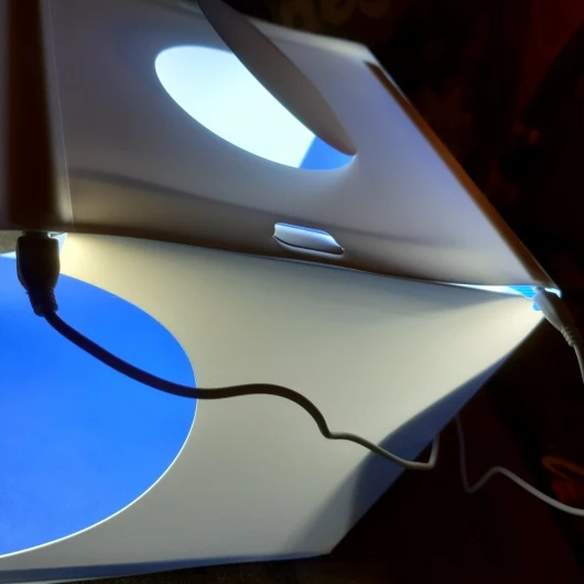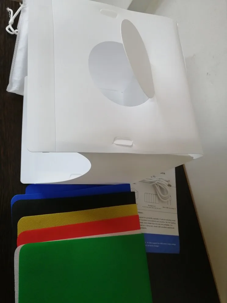 Продукт отвечает моим потребностям. Простая сборка и хранение. Свет сильный, цвет фона сделан из хорошего материала, типа ткани и как цветовые вариации. Беспокоился, что не загораются, но мини-студия не разочаруется. Провод немного короткий, но ничего, что расширение USB не решить. Планируйте купить студию побольше. Студия поставляется с небольшим руководством для сборки и разборки, цветной НИЗ и кабель. Также очень хорошо упакованы в надувные пластиковые пузырьки, добавляя большую защиту светодиодам, которые идут вместе. Рекомендуем!