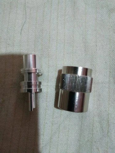 Самая малая втулка-вставка под кабель диаметром 5,5 мм (внутренняя,она,к сожалению, без резьбы).Следующая вставка,которая побольше и с резьбой имеет диаметр под кабель 9,2 мм. Изоляция центрального проводника сделана из сомнительного изолятора(боюсь,что при долгой пайке,-поплывет).Материал самого разъема( конечно не латунь,скорее всего сплав дюрали).Ну а так ,я думаю,-пойдет для любительского радио.