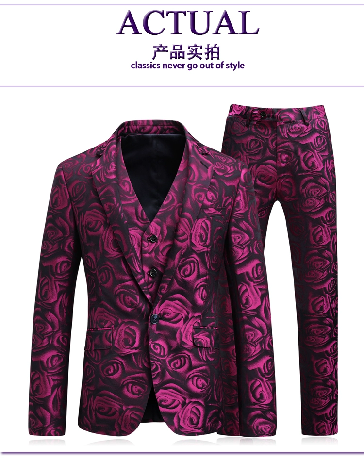 Костюм из трех предметов в виде красной розы, смокинг, мужское приталенное платье, пиджак + жилет + брюки, свадебный банкет, мужской костюм