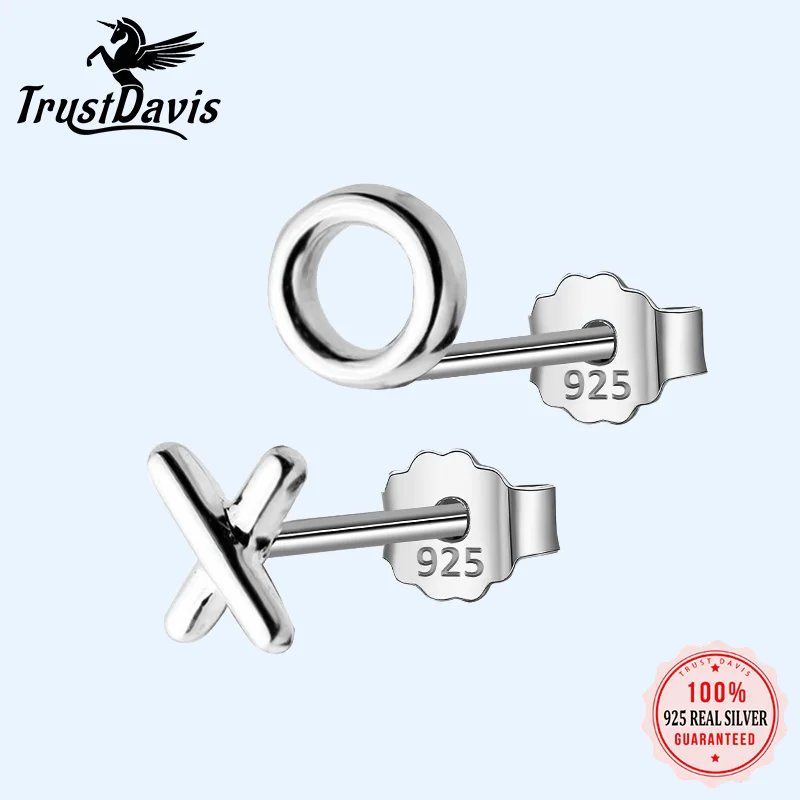 TrustDavis, 100%, серебро 925 пробы, Женские Ювелирные изделия, женские серьги-гвоздики с ассиметричным стерлингом X O для дочки и девушки DS316