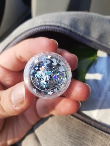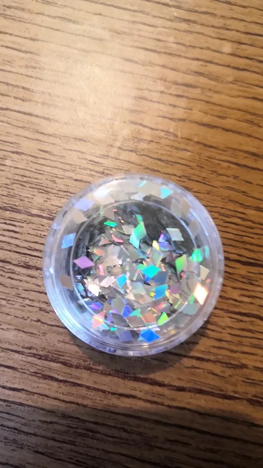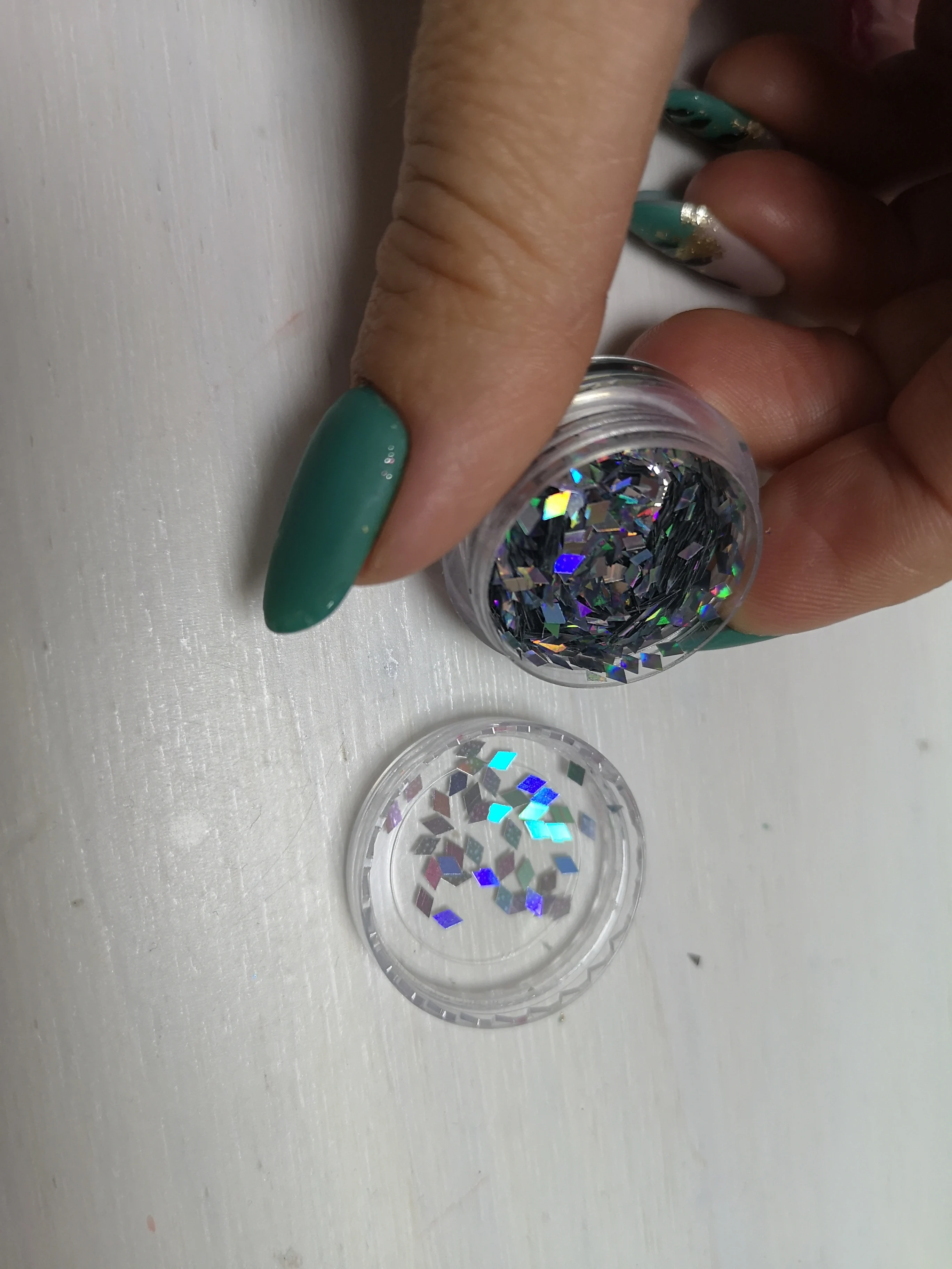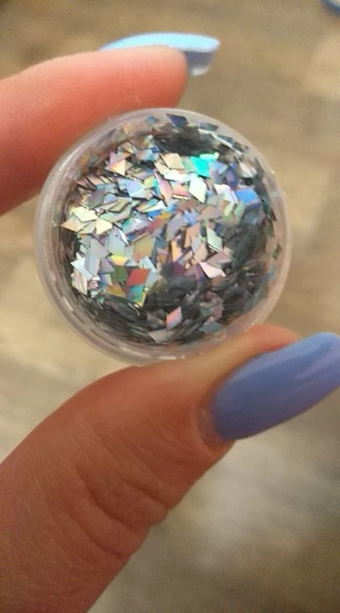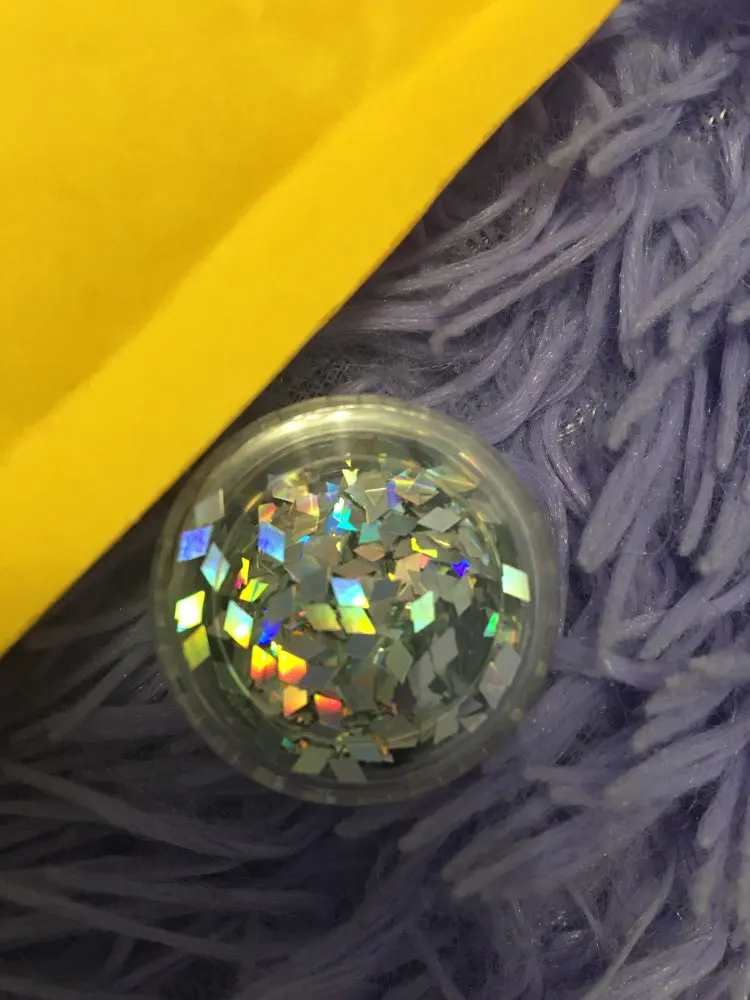 Шли долго, но дошли. Возможно, это косяк транспортной из-за перегрузка на новогодние праздники. Блестяшки переливаются голографикой. Без минусов не обошлось. Для меня существенно. Они настолько плотные, что совсем не гнутся. В дизайне углы топорщатся и запечатать их проблематично. С задачей справились 2 слоя топа ♀️. По мне, так быть не должно. За это снимаю звезду. Продавец не информировал, какая толщина материала и насколько он гибкий. А так, вполне может быть в арсенале местера.