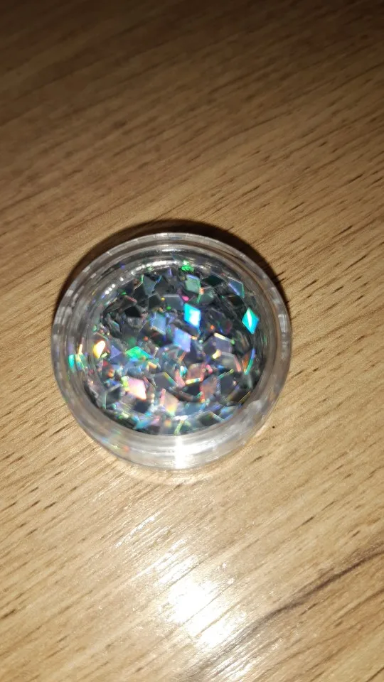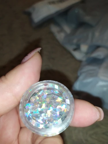 Товар шёл больше месяца, все хорошо упаковано, ничего не рассыпалось. На ногтях смотрятся прикольно, декор отличный. Блесток в баночке довольно много, хватит на долго. Цвет и Описание точное. Рекомендую.